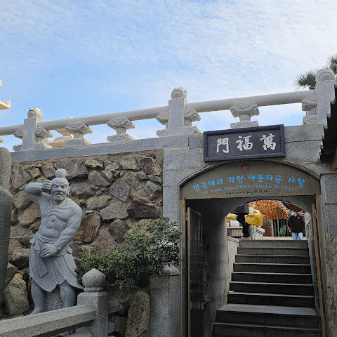 한국에서 가장 아름다운 사찰이라고 불리는 이유를 알겠어요! 바다 전망이 정말 환상적이에요. 입구에는 십이지신 동물 조각상이 있는데, 많은 사람들이 자기 띠 동물 앞에서 사진을 찍어요. 계단을 반쯤 내려가다 왼쪽으로 돌면 멋진 사진 명소가 나오는데, 여기도 사진 찍기 좋은 곳이에요. 사찰 안에는 식당과 깨끗한 화장실도 있어요.