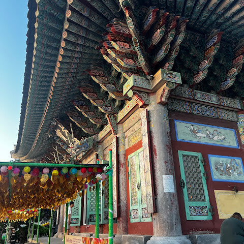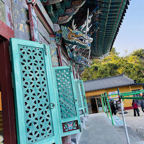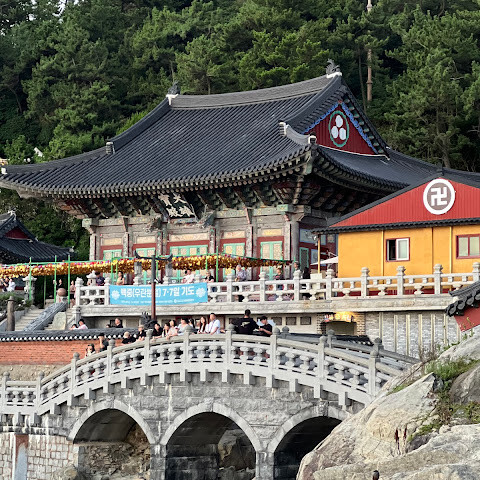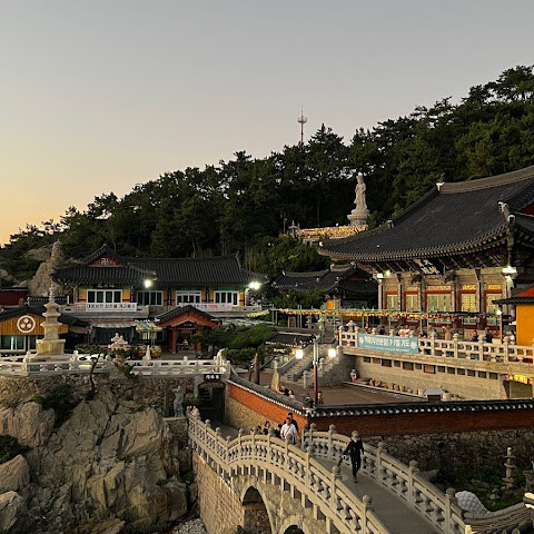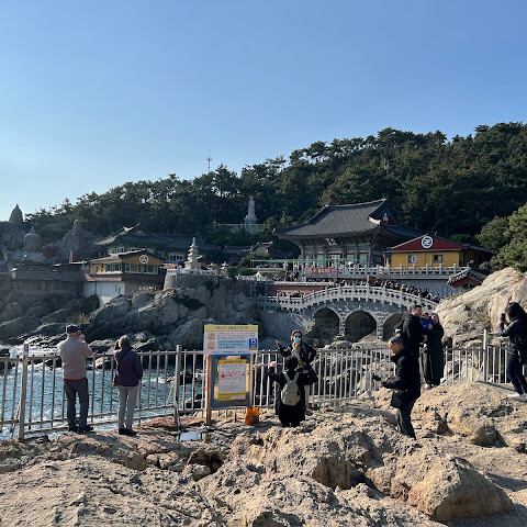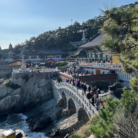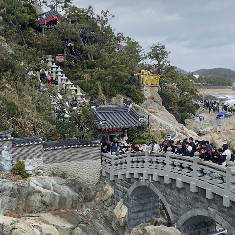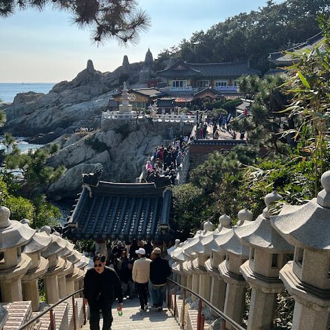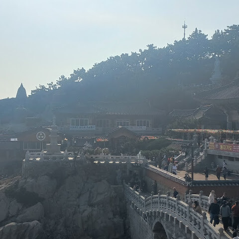 사찰이 정말 아름다워요. 버스를 타고 내려가면 아래쪽에서 내리고, 조금 오르막길을 걸어야 해서 5,000원에 우버를 탔어요. 여럿이 함께 가면 더 편해요. 계단이 많으니 물과 좋은 신발을 챙겨가세요. 사람이 정말 많아요. 저는 월요일에 반나절 동안 갔어요. 사찰 입구에는 여러 개의 노점이 있고, 아래쪽 길 건너편에는 부산 디즈니랜드 입구가 있어요.