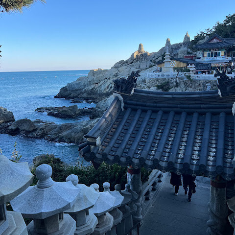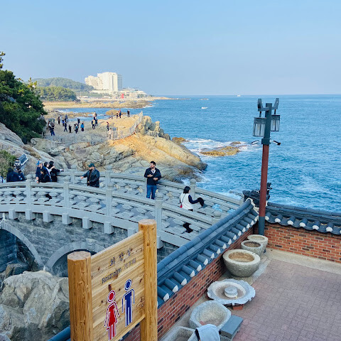 이른 아침에 갔는데 아직 사람들이 많이 몰리지 않았어요. 바닷가에 있는 멋진 사찰이에요. 부산 패스를 가지고 있어서 루지 타기 전에 먼저 들렀는데, 루지는 여기서 걸어서 10분 거리에 있어요.
