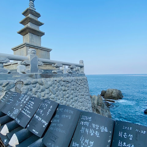 산코지도 규모가 크고 놀랐습니다만, 이쪽은 뭐니뭐니해도 **「바다에 있는」**라는 입지가 압도적입니다! 한국에서 바다 옆에 있는 절은 드문 것 같고, 절벽 절벽 위에 세워진 본당이나, 바다를 배경으로 한 거대한 관음상은, 다른 장소에서는 볼 수 없는 장엄한 경치를 만들어 내고 있었습니다.