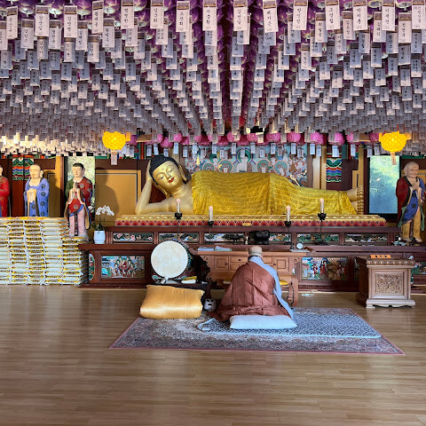 경치는 좋지만, 규모는 크지 않습니다. 본당에는 석가모니불상이 모셔져 있습니다. 방문하신다면 롯데월드와 롯데아울렛파크를 함께 방문하시면 같은 곳까지 오는 번거로움을 덜 수 있습니다.