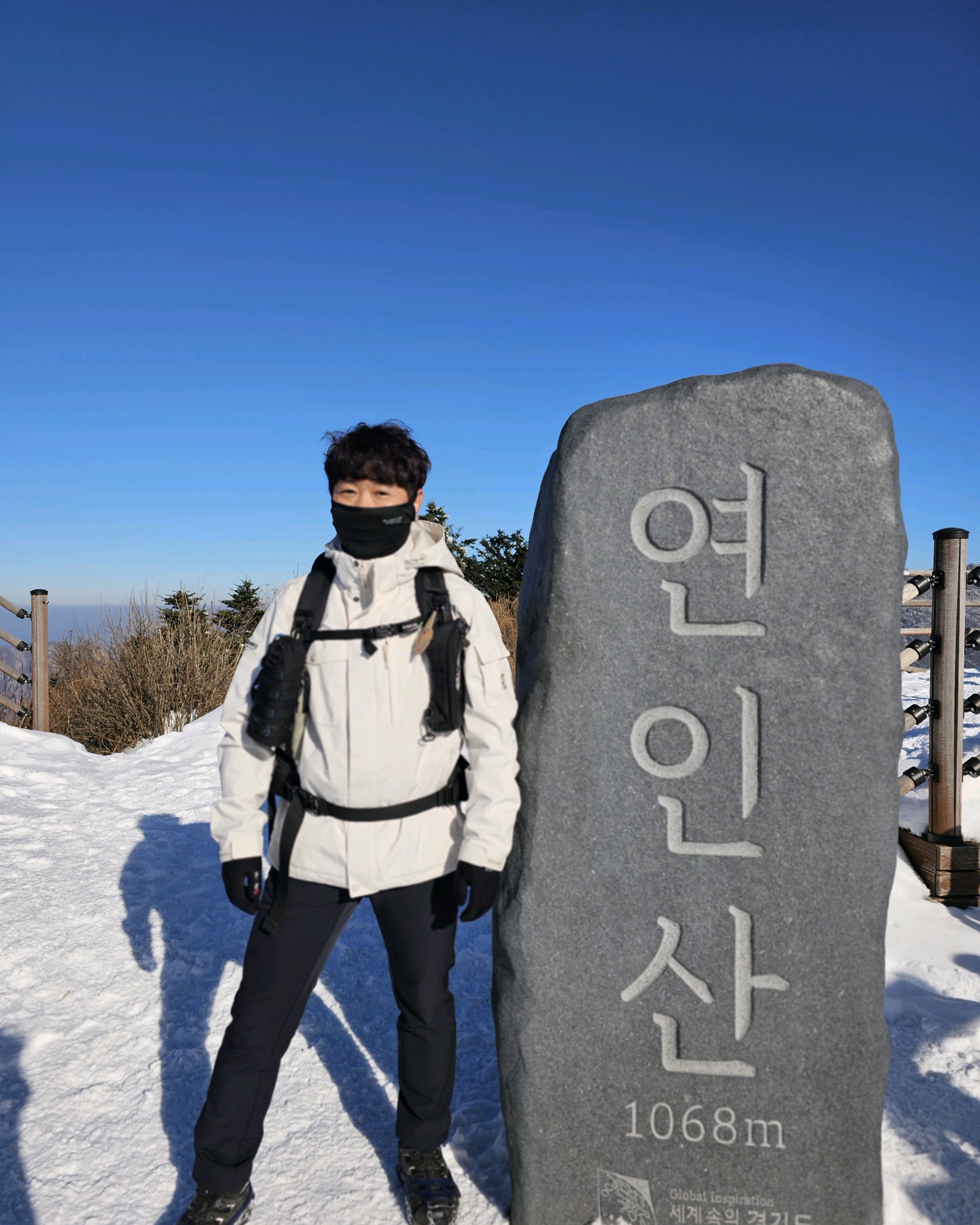 동생과 함께간 연인산은 백둔리주차장에서 시작했으며 소망능선 최단코스로 올랐다. 눈 쌓인 길을 아이젠과 스틱을 이용해서 천천히 올라 생각보다 쉽게 정상에 올랐다. 가까이 명지산에서 멀리 화악산까지 모두 보이고 미세먼지에 갇힌 모습이 조금은 안타갑더라. 연인산 최단코스는 생각보다 경사가 있는편이라 천천히 오르고 내려가시길 추천드린다. 힘든산도 페이스만 조절하면 쉽게 오를 수 있다.