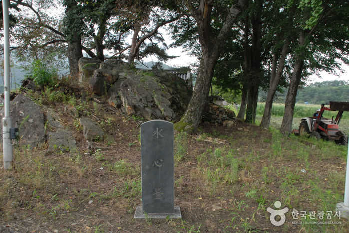 복수면 곡남리 마을의 조헌 선생 사당 표충사 뒤쪽에 자리하고 있는 수심대(水心臺)는 커다란 바위이다. 낮은 동산에 자리를 잡고서 오랜 세월 풍상을 이겨낸 소나무들과 함께 조헌 사당을 지키고 있다. 하천 쪽을 향하고 있는 낮은 위치의 바위에 수심대라는 글씨가 새겨져 있다.