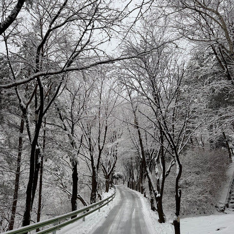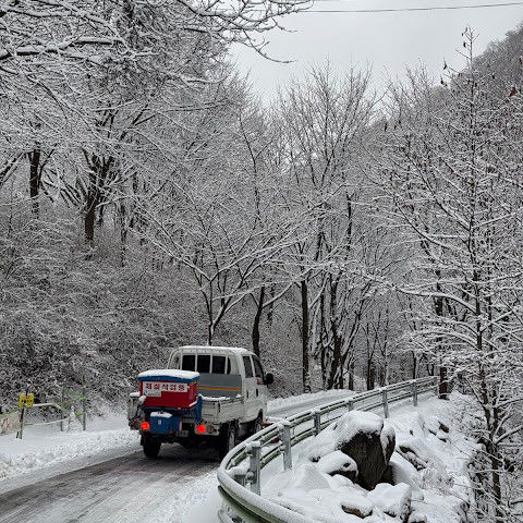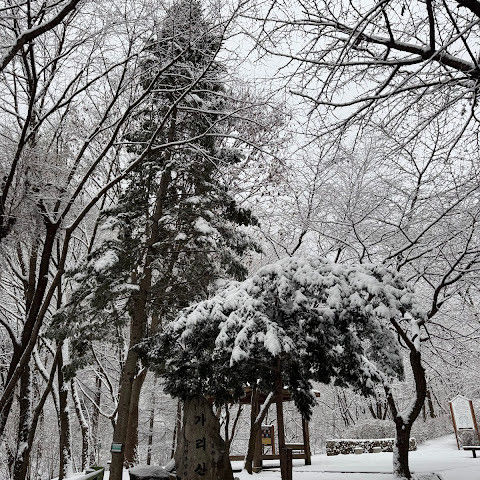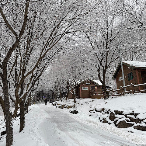 25.1.27 눈 덮힌 가리산 자연휴양림입니다. 가리산 등산과 연계하여 1박하면 참 좋습니다. 추천합니다.