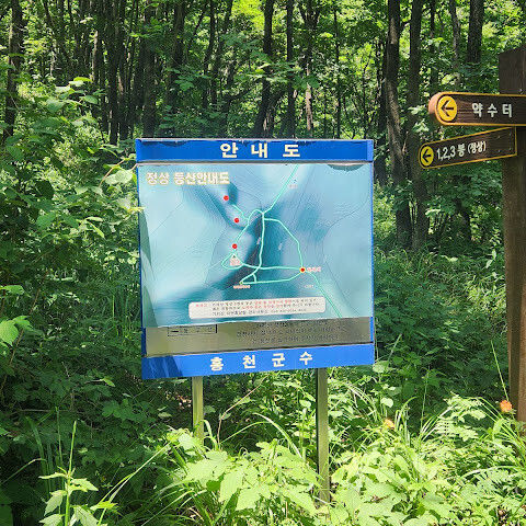 등산로 3시간, 4시간 코스가 있으며 초등 3학년이상 등반 가능 | | 관광코스안내 | 블루코스 : 자연휴양림주차장 → 합수곡 → 가삽고개 → 정상 → 무쇠말재 → 합수곡 → 주차장(7.2km / 3:30 소요)