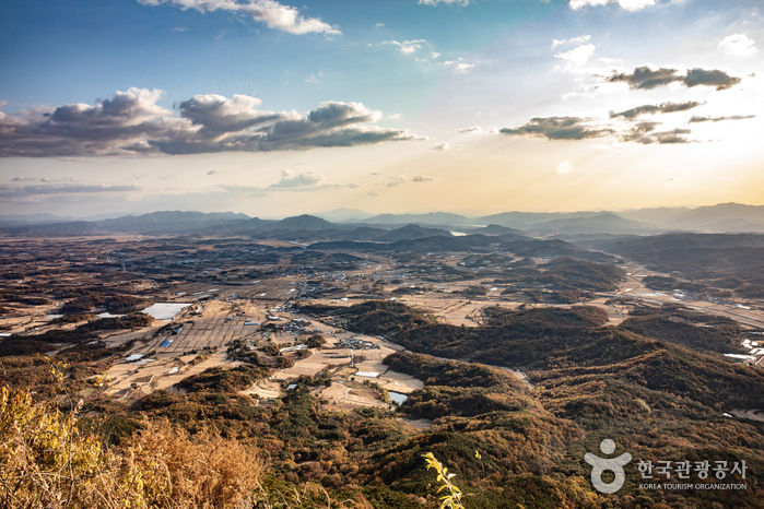 비봉산은 일명 자미산이라고도 부르는 명산으로 고려 시대 이전에는 태행산, 또는 대항산으로 불리기도 했으며 삼국시대에 견훤이 이곳에 성을 쌓고 은거했다는 전설이 있다. 이 산을 동쪽에서 바라보면 봉이 날개를 펼치고 앉아 있는 모습이며 남쪽에서 보면 장군이 투구를 쓰고 서 있는 형국이고 북쪽에서 건너다보면 옥녀봉을 바라보는 용기찬 장군 기상으로 보인다. 북쪽에서 건너다보면 옥녀봉을 바라보는 용기찬 장군 기상으로 보인다. 북쪽 산 밑으로는 예천군 지보면과 경계를 이루는 낙동강이 하얀 비단처럼 가로 놓여있고 사방으로 넓은 평야와 학가산, 팔공산, 보현산, 갑장산, 노악산, 속리산 등 명산들이 한눈에 들어온다.