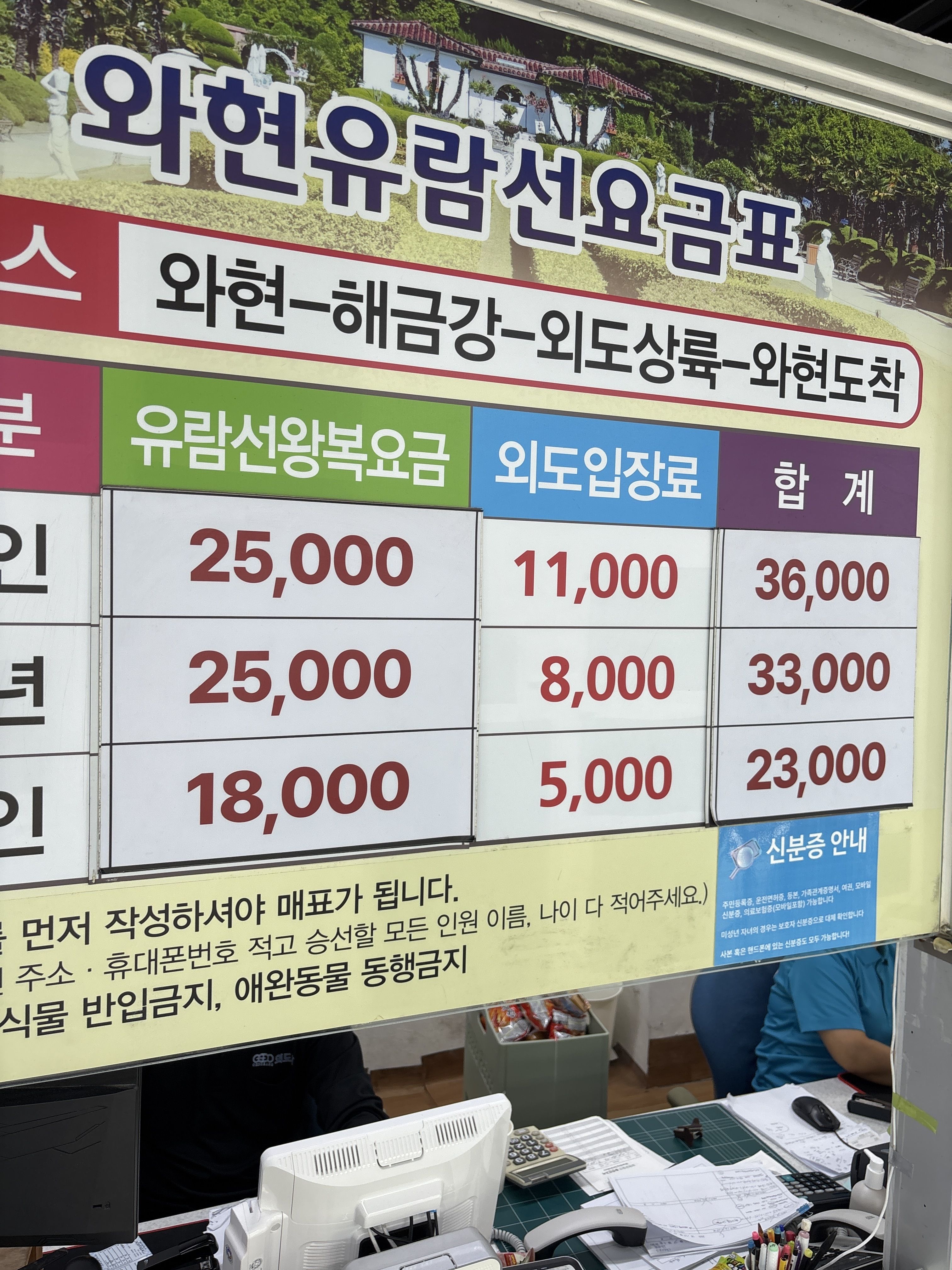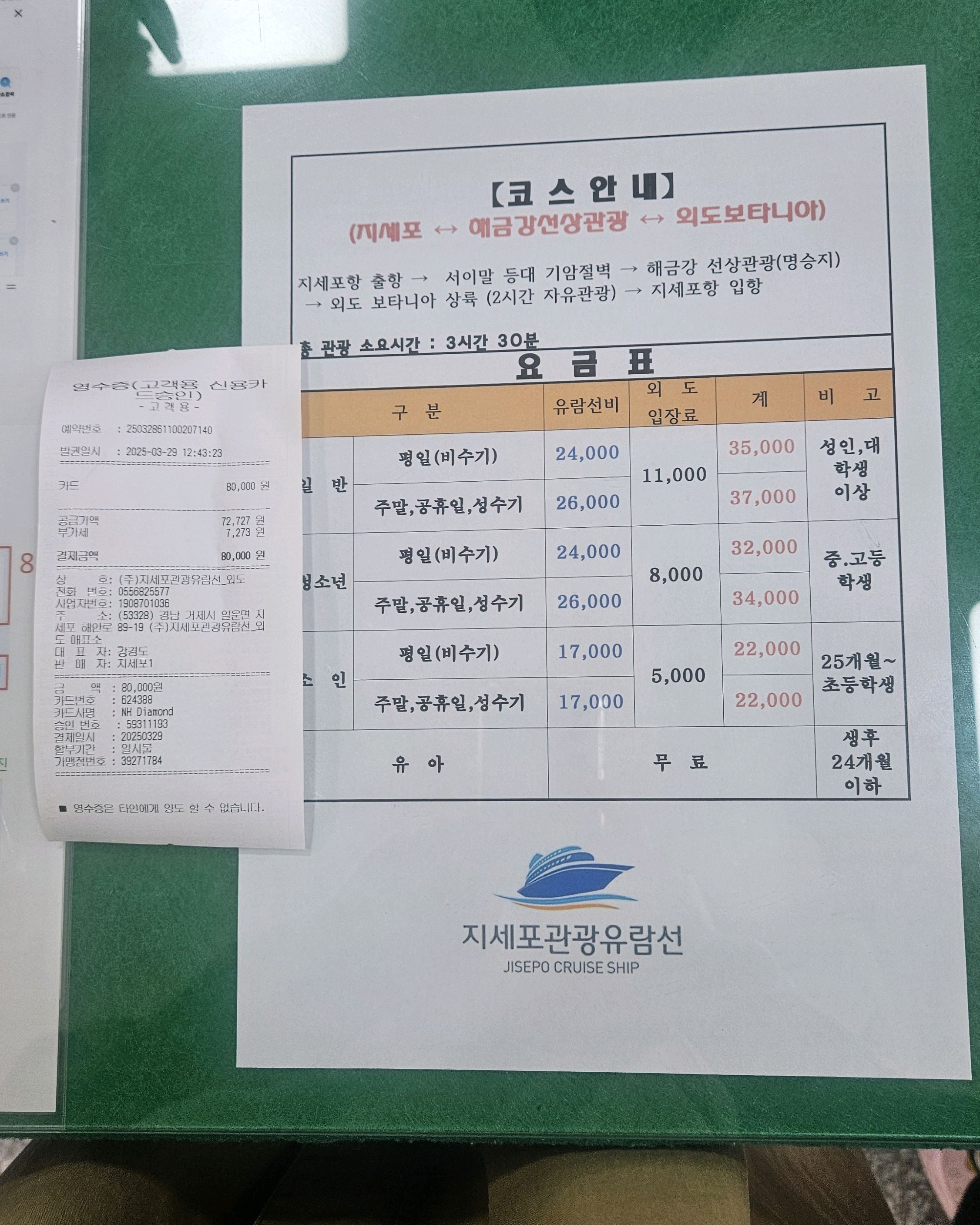 💳요금: 2코스(외도+해금강)(평일,주말요금 상이)(주말요금 기준) 성인25,000원 + 외도입장료11,000원 총36,000원 카드결제완료
