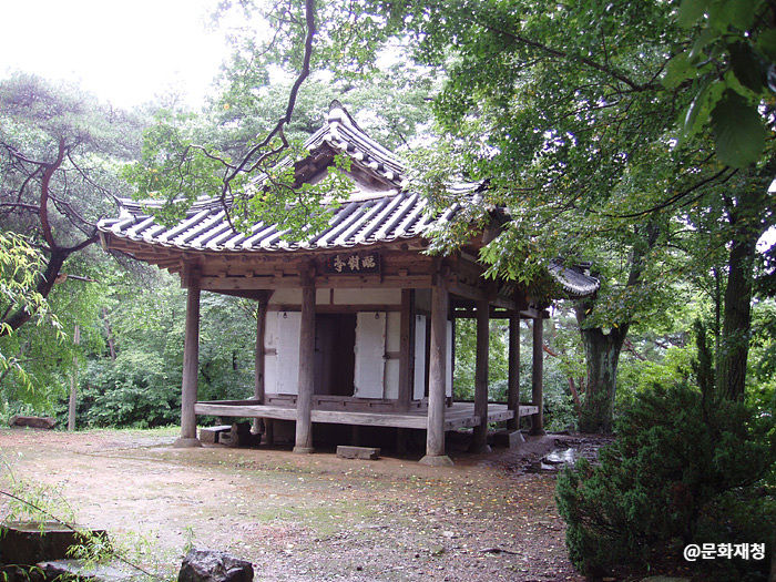 임대정원림은 1500년대 말에 남언기가 조성한 고반원 옛터에 민주현이 3칸 팔작지붕의 정자를 건립한 것이다. 전통적인 한국 정원의 특징을 그대로 담고 있는 임대정원림은 대상부와 대하부로 나누어져 있다. 대상부에는 정자를 중심으로 중도가 있는 방지와 소나무, 대나무, 매화나무, 살구나무, 배롱나무, 은행나무 등이 심어진 숲으로 구성되어 있다. 또 절벽 아래의 계단을 내려가면 위와 아래에 2개의 연못이 있다. 위쪽의 연못은 정자로 가는 길옆에 길게 늘어진 형태로 있고 가운데 2개의 섬이 있다. 아래쪽 연못은 중도가 하나인데 위쪽의 연못에 비해 좀 큰 편이며, 주위에 배롱나무가 있다. 두 연못 사이는 수구를 통해 연결되어 있다. 지난 날 이 정자에는 많은 문인이 찾아와 시를 읊었고, 충효 예절을 가르치는 서당으로 활용되었다고 한다. |