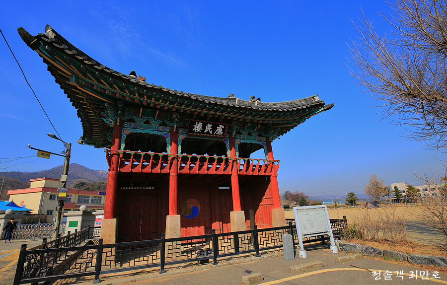 조선 시대의 아산군 관아 입구에 세워졌던 문루인데, 동향한 낮은 기단 위에 4각형의 주형 초석을 배열하고 그 위에 둥근 기둥을 세워서 루마루를 설치하였다. 하층은 정면 3칸에 각각 문을 달아 통로로 사용하였으며, 좌우 협간의 문미(門楣) 상부에는 홍살을 설치하였고 측면의 2칸은 판벽으로 막았다. 공포는 2익공인데 외출목은 없으며 처마 밑의 기둥 사이에는 간략화된 화반형의 초화반을 중앙문에 3개, 그 이외의 문에는 모두 2개식을 배치하였다. 지붕 가구는 앞 뒤 기둥 위에 대들보를 걸었는데 대들보 위에 소로를 두고 그 위에 뜬 창방을, 다시 이 뜬 창방 위에 주두를 놓아 종량을 받치도록 하였다. 종량 위에 있는 대공은 파연대공(波蓮臺工)의 형태를 이루고 있는데, 이대공과 결구된 뜬 창방은 그 위에 있는 마루 도리와의 사이에 간단하게 장식된 초각반 3개를 배치하여 중간부분을 보강하고 있다. 천장은 연등 천장이며 모도 단청으로 채색되어 있고 이칸 정면이 "여민루"란 현판이 걸려 있다.