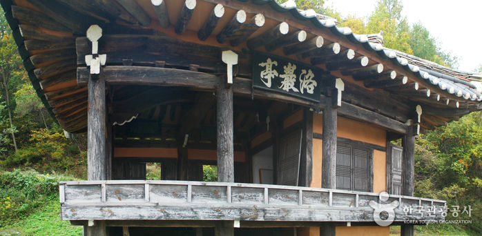 깎아지른 듯한 절벽 위에 있어 낙동강 줄기가 한눈에 내려다보이는 곳에 위치한 낙암정은 조선 전기의 문신 배환의 정자이다. 이후 1813년(순조 13)과 1881년(고종 18)과 1955년에 중수하였다. 건물 구조는 정면 3칸, 측면 2칸의 팔작지붕으로 안동지역에 있는 일반적인 정자의 형태와 다를 바 없다. 하지만 난간기둥이 윗부분에 비해서 아랫부분이 짧은 것이 특징이다. 기단은 원래 자연석이었으나 몇 번의 보수를 거치면서 시멘트로 쌓았다.