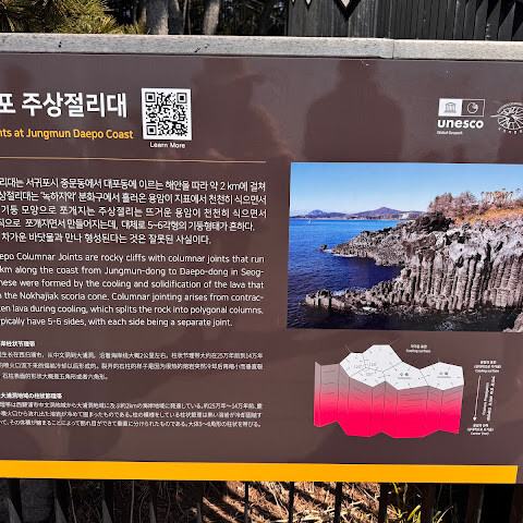 제주도의 주상절리대는 숨 막힐 듯 아름다운 자연의 경이로움을 간직한 곳으로, 제주도에서 가장 상징적인 명소 중 하나입니다. 유네스코 세계자연유산으로 지정된 이 지질학적 지형은 화산 용암이 바다와 만나 급격히 식으면서 형성된 육각형 현무암 기둥으로, 해안선을 따라 펼쳐지는 독특한 기하학적 무늬를 자랑합니다. 절벽은 대한해협의 청록색 바닷물 속으로 아찔하게 솟아 있으며, 바위에 부딪히는 파도는 자연의 위력과 아름다움을 황홀하게 보여줍니다. 잘 정비된 전망대와 산책로가 있어 안전하게 주변을 탐험하고, 멋진 사진을 찍으며, 절벽의 규모와 대칭을 온전히 감상할 수 있습니다. 근처에는 절벽의 지질학적 특징과 형성 과정에 대한 정보를 제공하는 작은 방문자 센터가 있습니다. 이곳은 넓은 주차 공간과 명확한 안내 표지판이 있어 가족, 나홀로 여행객, 자연 애호가 등 누구나 쉽게 방문할 수 있습니다. 만조 때나 파도가 거세질 때면 바위 기둥에 극적인 물보라가 일렁이는 장관을 연출하며 더욱 특별한 경험을 선사합니다. 성수기에는 사람이 많을 수 있지만, 절벽의 아름다움과 독특함은 꼭 방문할 가치가 있습니다. 주상절리는 아름다운 풍경, 지질학적 특징, 그리고 자연의 원초적인 힘을 사랑하는 사람이라면 제주도에서 꼭 방문해야 할 곳입니다.