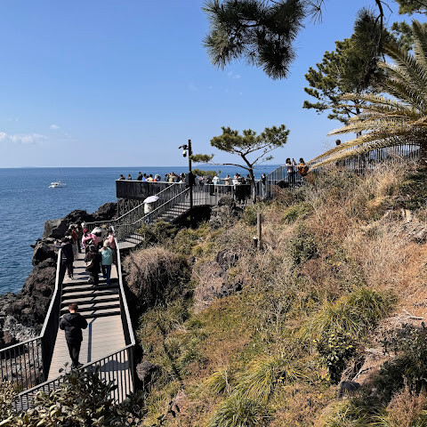 제주도에서 비교적 덜 알려진 명소 중 하나입니다. 이곳에서는 아름다운 일몰을 감상할 수 있으며, 날씨가 맑으면 절벽으로 가는 길에 한라산의 장엄한 풍경도 볼 수 있습니다. 절벽에 도착하면 멀리 마라도와 송박산까지 조망할 수 있습니다.