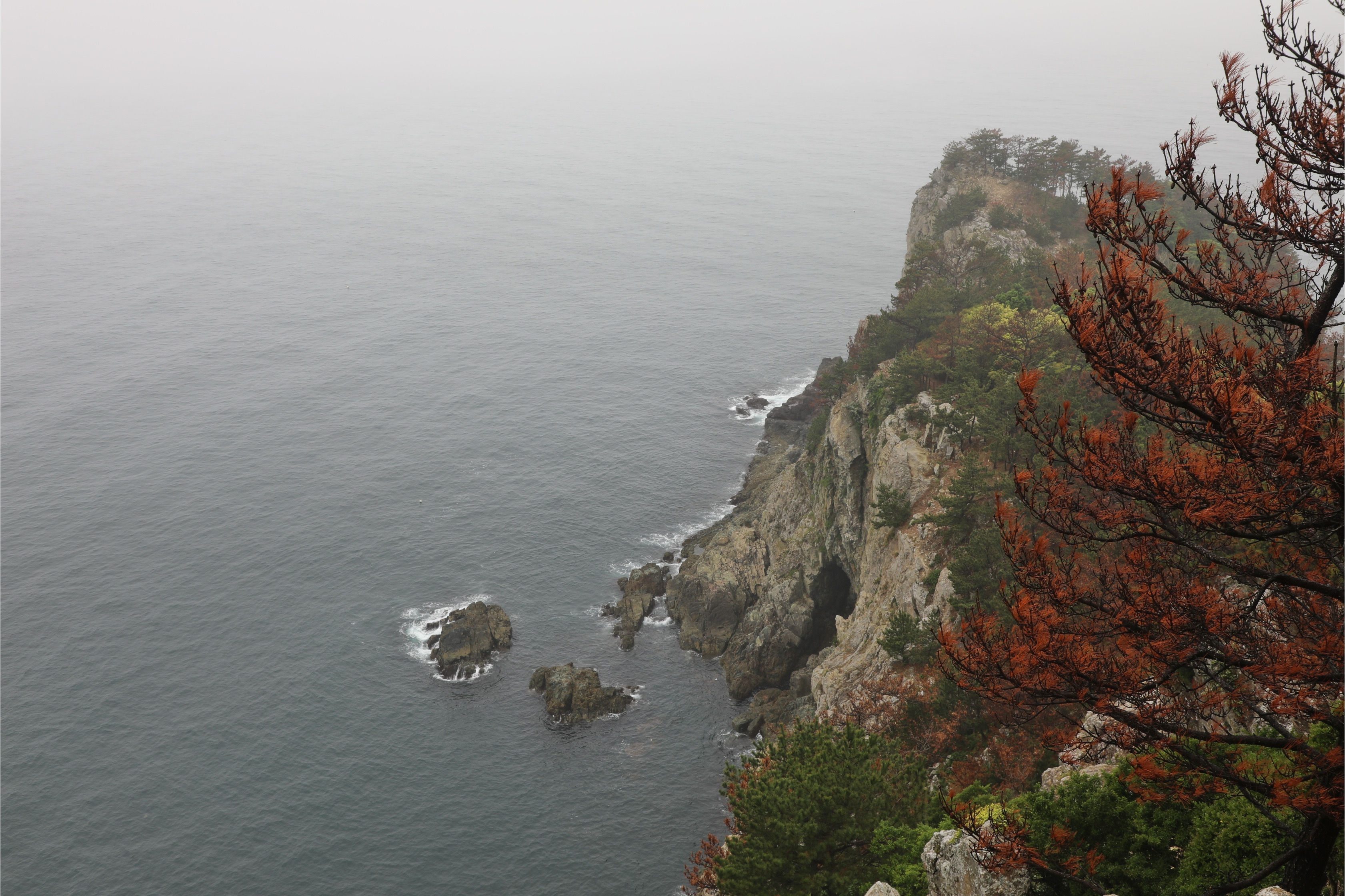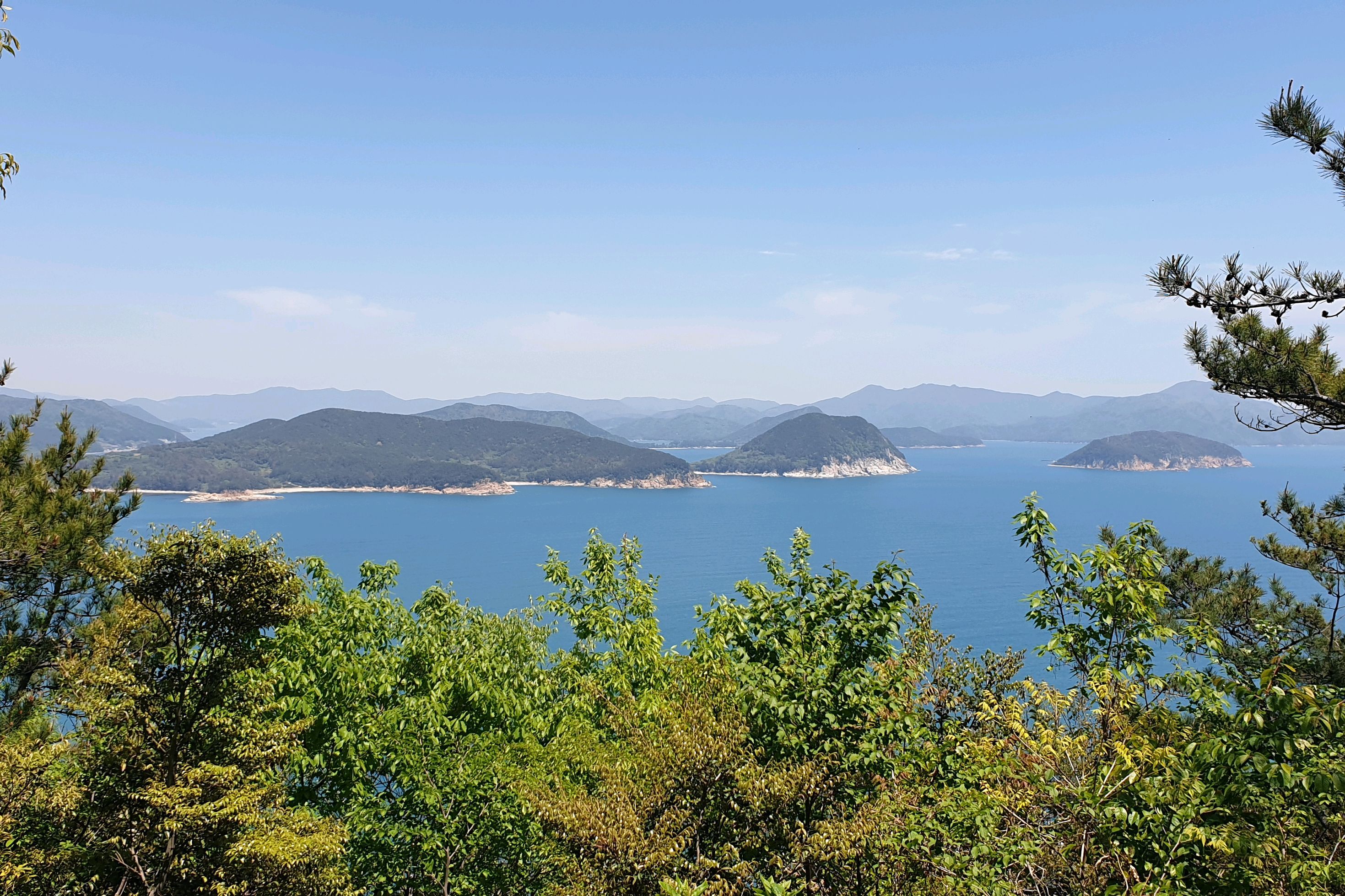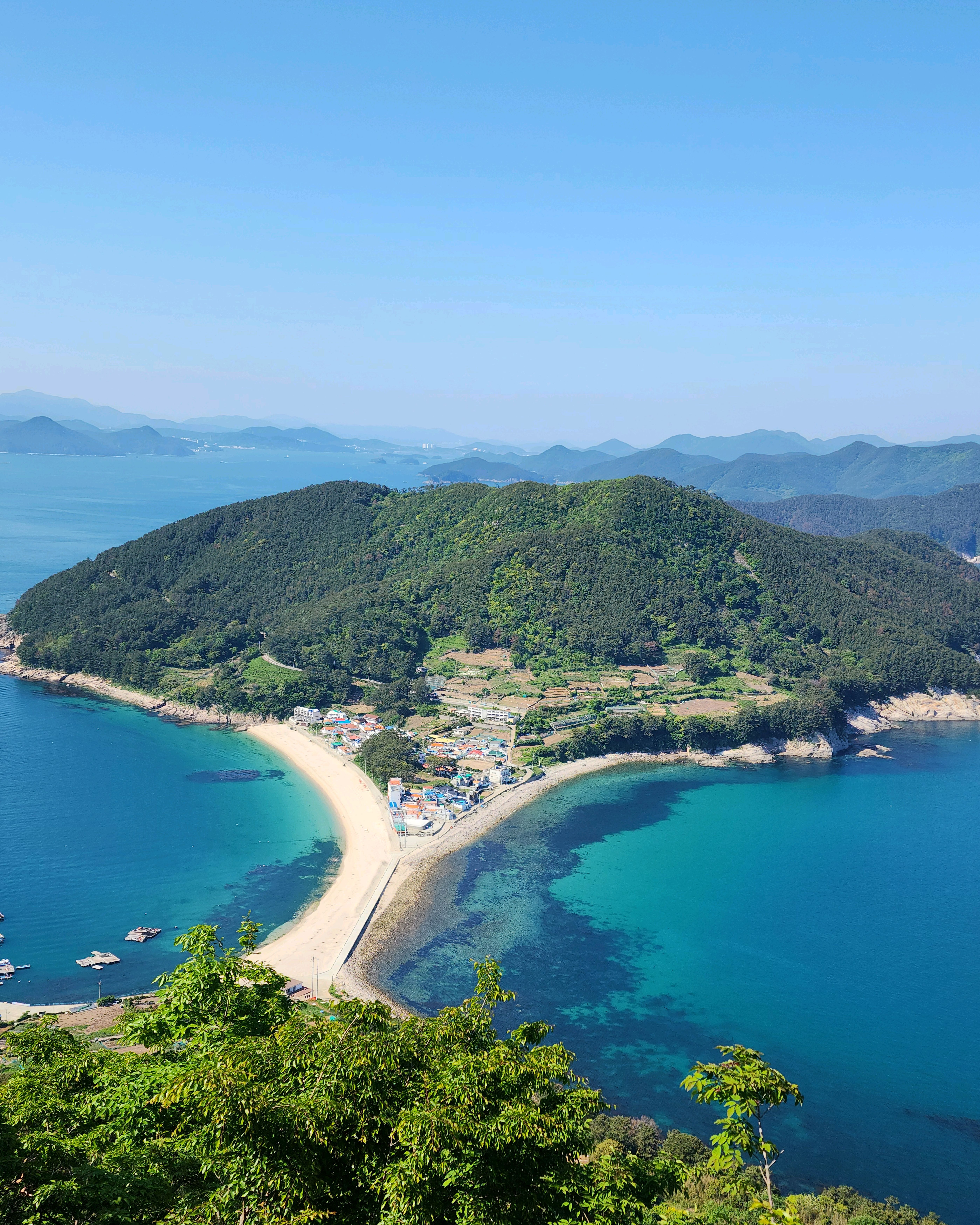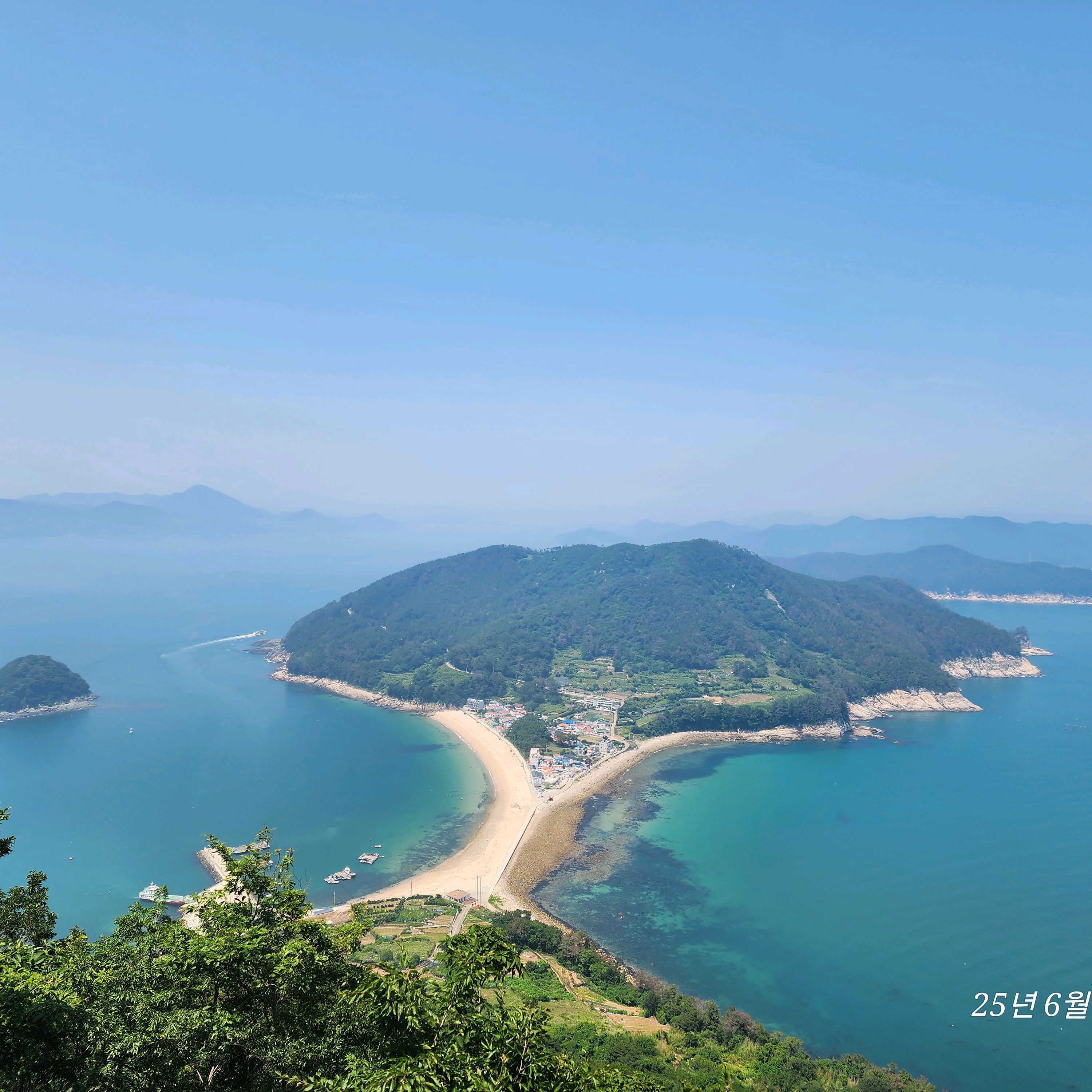 바깥섬의 전망대에서 바라보는 비진도해수욕장과 연결된 안섬의 풍경이 유명한데 오늘은 볼 수 없다.