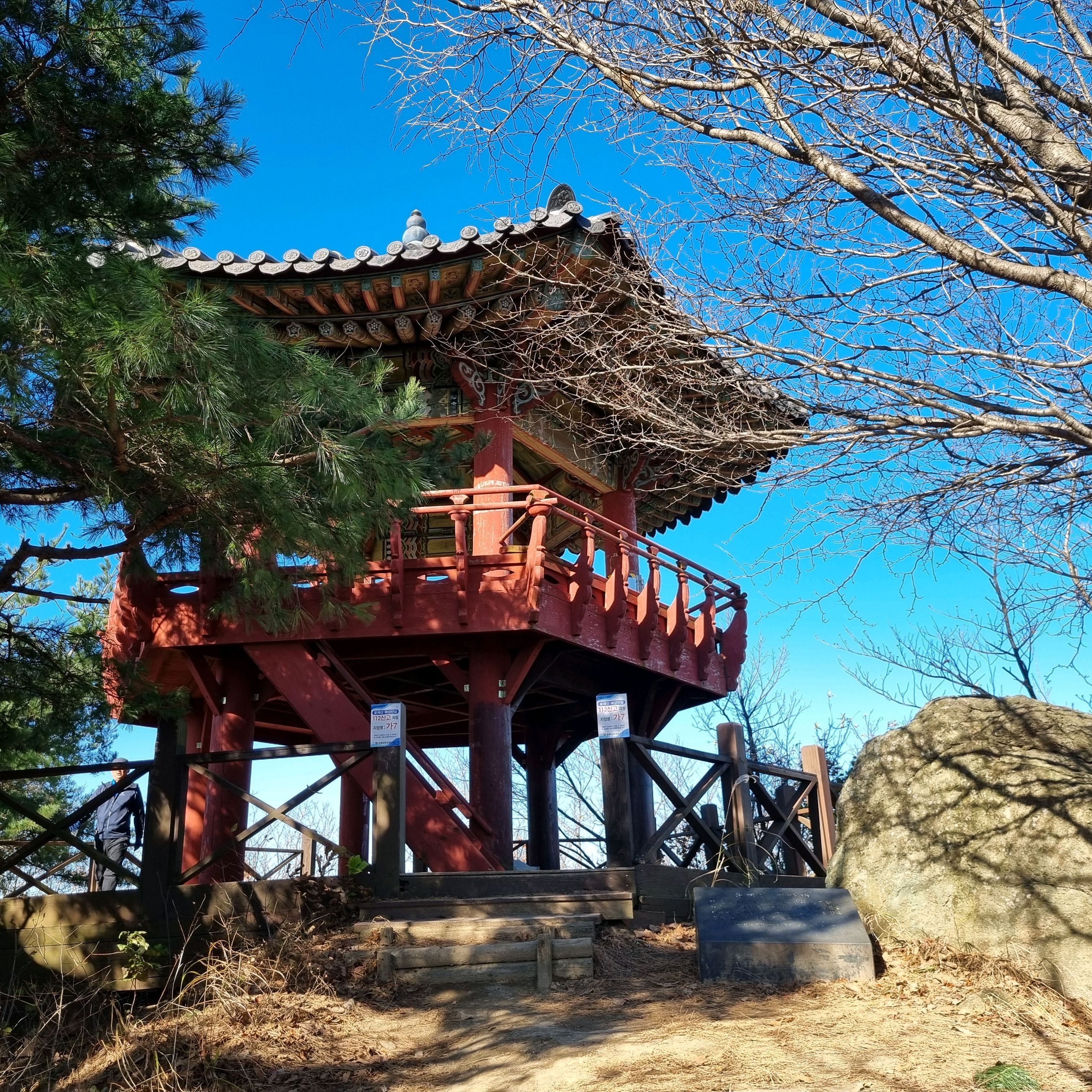 🪨인증: 정상석 크기 소, 정자아래 있음, 정자 위, 포항시내 일부 조망