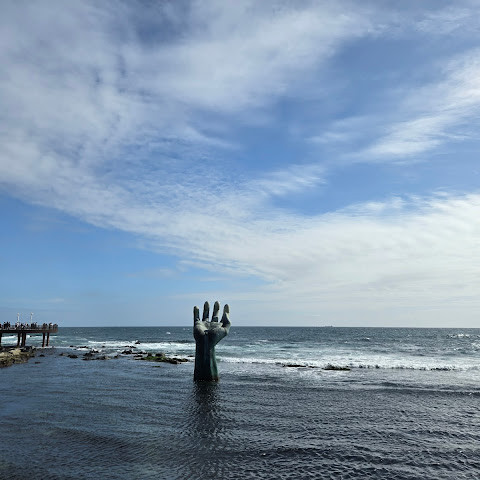 손이 두 개 있는데, 바다 위에 있는 손이 더 인상적이네요.