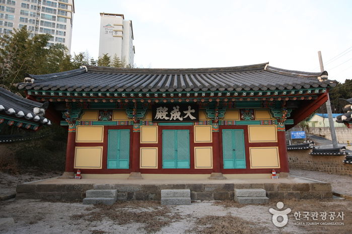 조선 태조(太祖) 7년(1398)에 현재 포항시 남구 대송면에 창건하였다고 하나 연혁에 관한 자료는 남아있지 않아 창건 연대는 정확하게 알 수 없고 임진왜란으로 전소되어 숙종 때 대송면 성좌동에 중창(重創) 하여 고종 8년(1871) 현감 원우상(元禹常)에 의하여 현 위치로 이건 되었다. 일제강점기 때 명륜 학교로 사용된 바 있고 1983년 2월 행정구역 개편에 따라 포항시에 편입되어 보존되고 있다. 대성전(大成殿)에는 중국의 5성현(五聖賢)과 송조의 2성현 우리나라 현철(賢哲) 18분의 위패(位牌)를 봉안(奉安) 하고 있으며, 매년 가을 상정일(上丁日)에 향제(享祭)를 올리고 있다. 특히 대성전은 정면 3칸, 측면 2칸의 맞배지붕·겹처마의 집으로 주심포계(柱心包系) 외일출목(外一出目)의 조선 후기 특징을 잘 나타내고 있는 건물이다. 부속건물로 내삼문, 외삼문 및 명륜당, 중문, 포사 등이 있다.