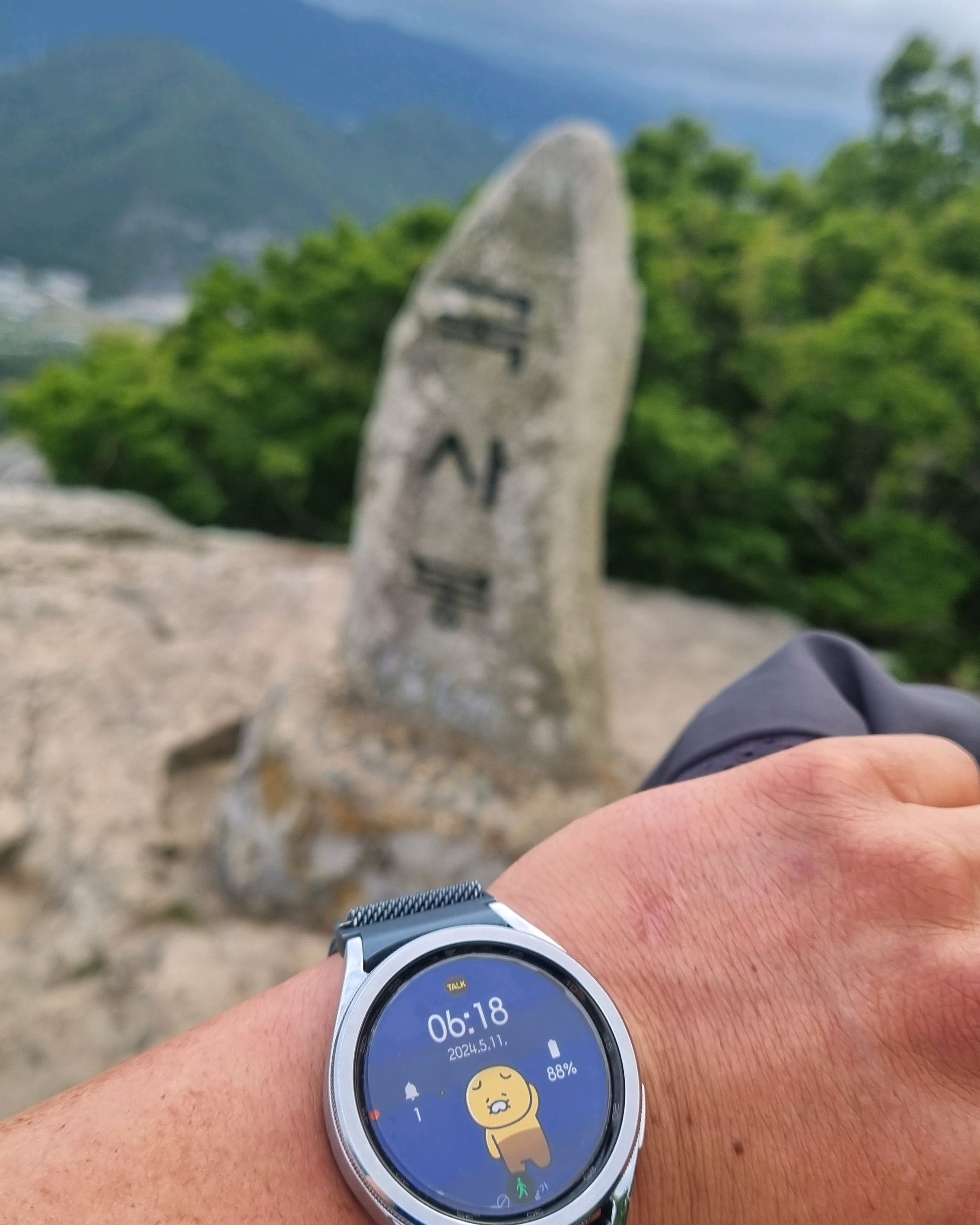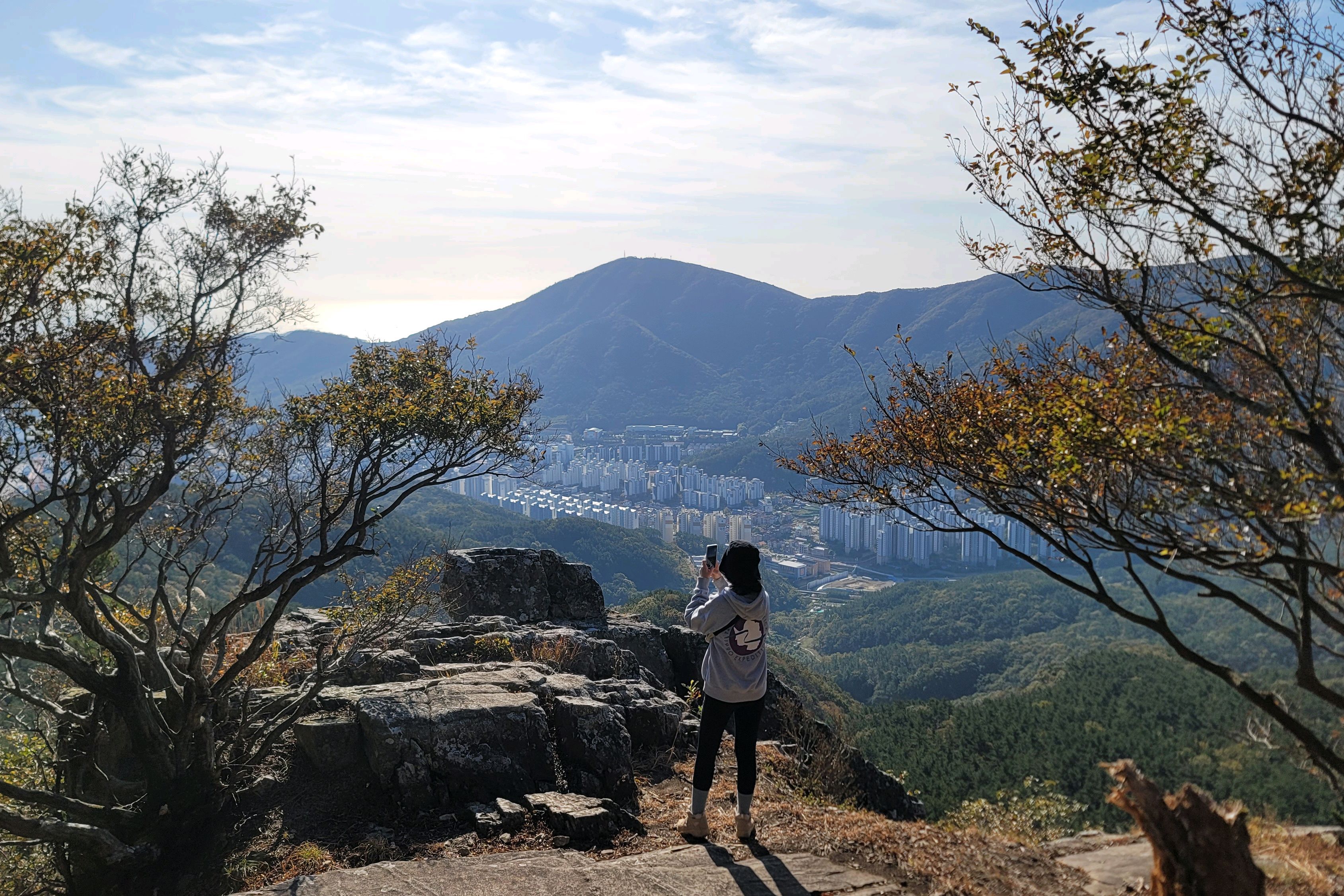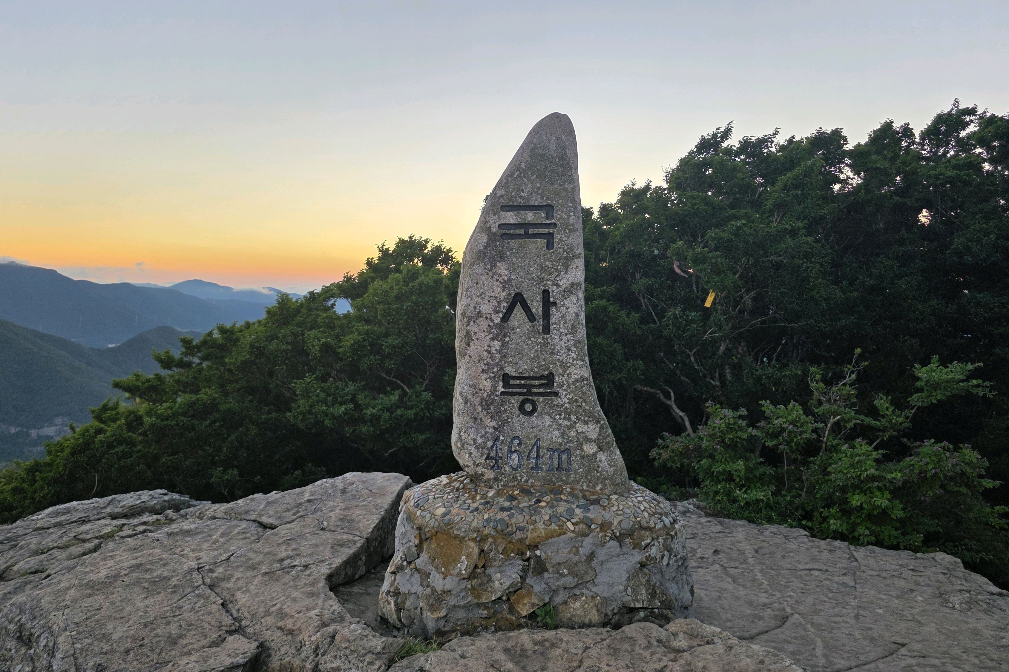 👣인증: 정상석 크기 중, 180도 섬,바다,도시 조망 좋음, 일몰을 보았는데, 아주동 야경 볼 수 있음