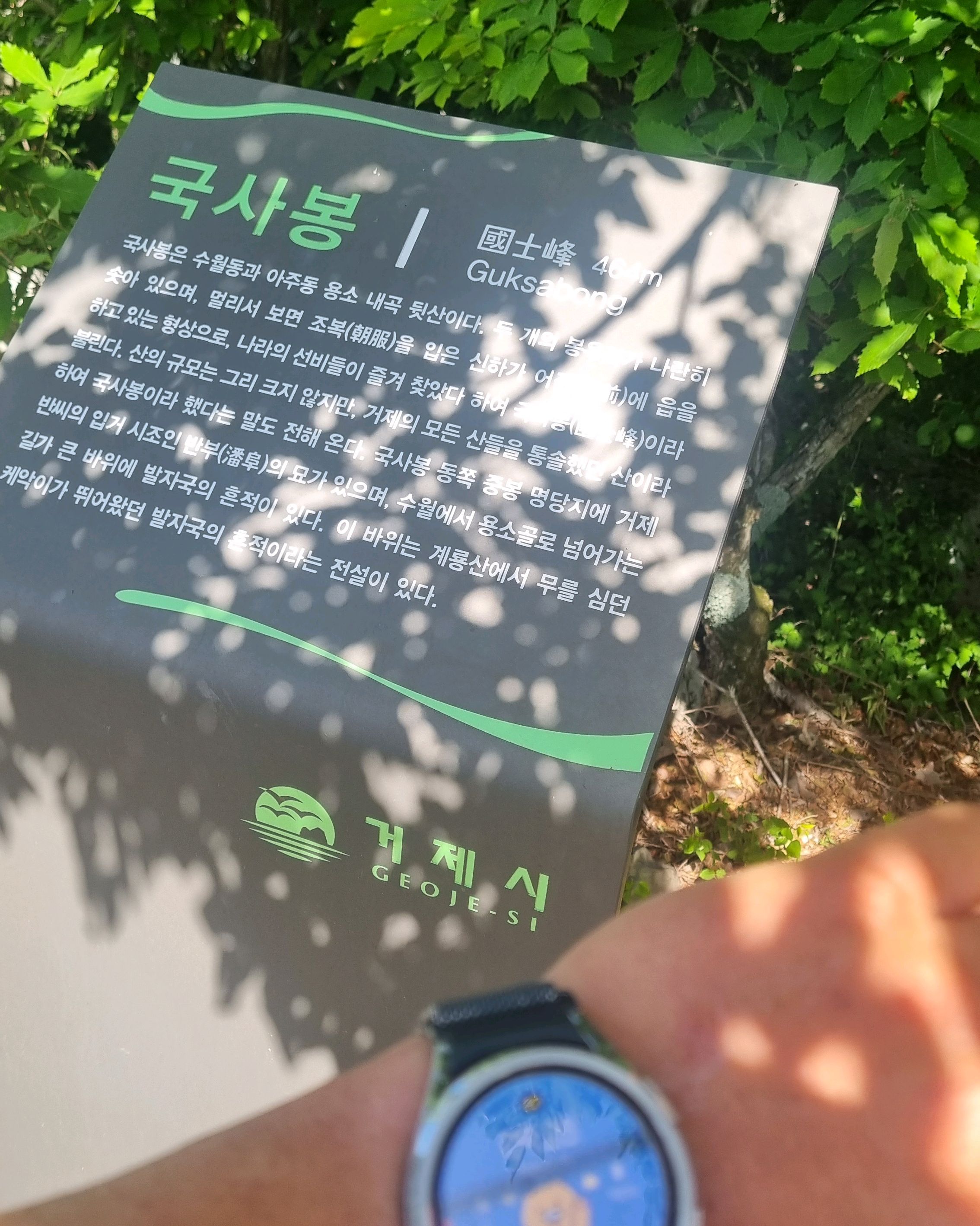 수월동과 옥포 뒷산으로 옥포만을 굽어보고 있는 이 산은 조정의 신하가 조복을 입고 조아리고 있는 모습과도 같다하여 국사봉이라 하며, 해발 464m의 이 산은 두 개의 봉우리가 서로 마주하고 있는 장군봉과 산 밑에는 장군발터가 있고 신선대 바위가 우뚝 솟아 있다. 이산에 오르면 대우조선과 옥포만 그리고, 고현과 연초가 한눈에 내려다 보인다. 계룡산, 대금산, 앵산, 옥녀봉이 이 산을 감싸고 있는 듯하고 멀리 한려수도의 물굽이 따라 펼쳐진 산과 바다는 절경이다. 특히 이 산은 임진왜란 때 왜적의 동태를 살피던 망산 역할을 했으며 수월계곡의 맑은 물과 봄에는 철쭉꽃으로 장관을 이루며, 산두릅, 산딸기, 산으름, 표고버섯 등 희귀한 산채가 많다.
