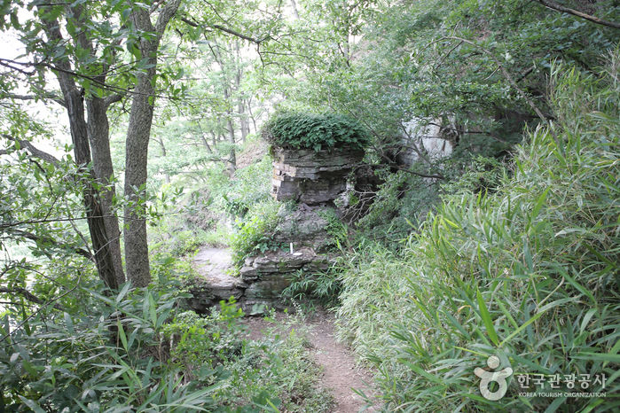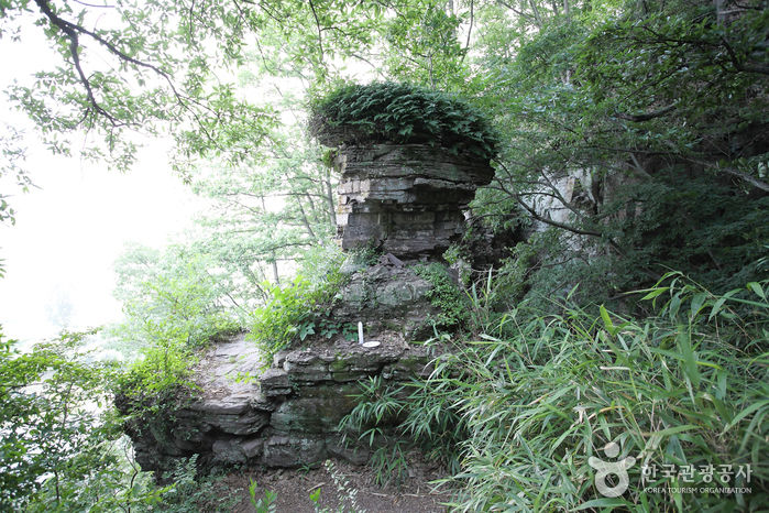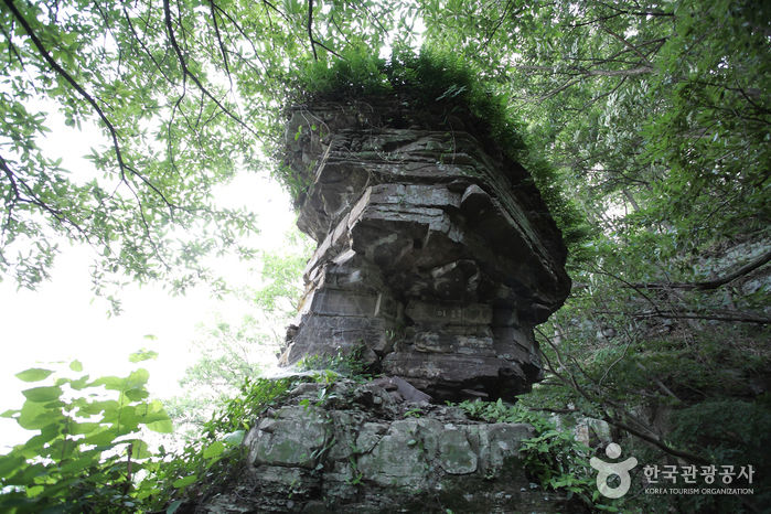 의령읍에서 동쪽으로 약 10㎞ 덜어진 정곡면 죽전리 남강변의 깎아지른 벼랑 위에는 흡사 탑 모양을 닮은 층층바위 하나가 우뚝 서 있는데, 이것이 바로 탑바위이다. 이 바위는 20톤가량의 커다란 바위가 아랫부분을 받치고 있으며, 그 위로 높이 8m가량의 작은 바위가 마치 탑층을 이루듯이 천연으로 층을 이루고 있으니, 자연의 조화치고도 매우 신기한 형상이다. 탑바위 아래로는 남강의 맑은 물이 굽이쳐 흐르고, 강 건너편은 끝없이 넓은 들판이 활짝 펼쳐져 있어서 절경이다. 각종 들꽃과 수목들이 만발한 뒷산의 경치 또한 한몫을 거들고 있으니, 의령을 찾는 관광객들에게는 최고의 명승이라 할 만하다.