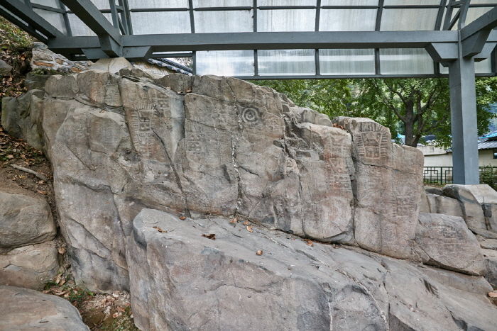 양전동 암각화는 높이 3m, 너비 5.5m의 직사각형 암벽에 새긴 그림으로, 1971년에 발견되었다. 암각화는 선사시대의 신앙과 생활상을 생생하게 표현한 그림으로, 주로 풍요로운 다산을 기원하는 주술적인 내용을 바위나 성스러운 장소에 새긴 것을 말한다. 양전동 암각화의 내용은 겹둥근무늬(동심원)와 십자무늬, 탈모양(가면형) 등이 조각되어 있다. 세 겹의 동심원은 4점으로 해와 달을 상징하고, 십자형은 부족사회의 생활권을 표시한 것으로 추정되며, 가면형은 모두 17점으로 사람의 얼굴 형태를 하고 있다.양전동 암각화 유적은 당시 주민들의 농경의식이나 제사 때 사용했던 장소로 추정되며, 이곳에 새겨진 각종 문양들은 우리나라 선사문화 연구의 귀중한 자료로 간주된다. 또한, 고령의 알터에 암각화가 있는 것으로 보아 《삼국유사(三國遺事)》 등에 나오는 난생설화(卵生說話)의 근원을 찾아볼 수 있으며, 6가야의 중심지가 김해가 아니라 고령으로 추측하는 가설도 나오고 있다.