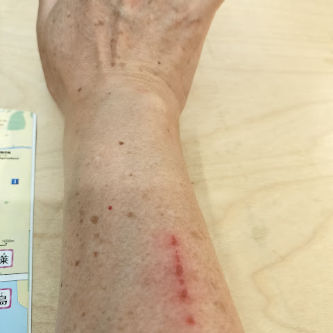 양손, 양발, 손등이 찰과상으로 피가 흘러, 회복에는 3주간 이상 걸렸습니다. 부스러기는 더 이상 사용하지 않을 것입니다.