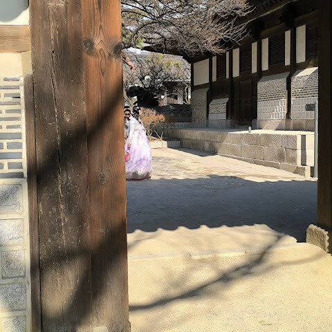 궁궐은 매우 텅 비어 있었고, 근처에 한복 대여점이 있어서 우리 가족은 아름다운 사진을 많이 찍었습니다.