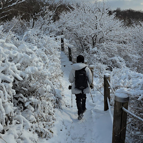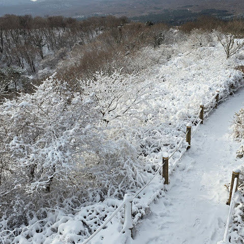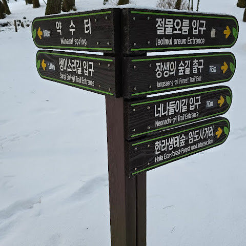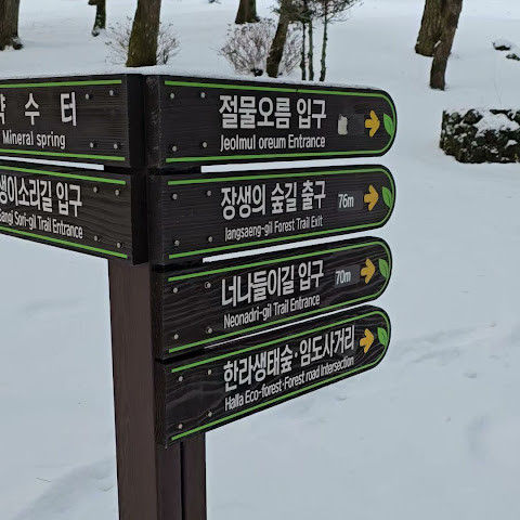 제주도 자연을 보려고 잠깐 들리려 했는데 기대 이상인 장소였어요. 눈오는 날씨였지만 얼떨결에 정상에도 오르고 산의 이모저모를 보며 좋은 시간을 보냈습니다