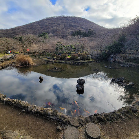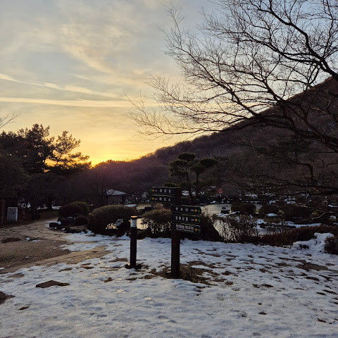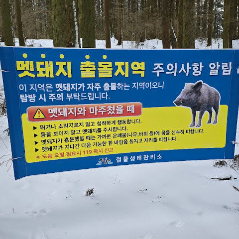 2월 25일에는 눈이 조금 남아 있었습니다. 입장료 1000원, 주차비 3000원입니다. 여러 가지 가능한 경로 중에서 우리는 2개의 최단 경로로 루프를 만들었고, 도보로 약 1시간이 걸렸습니다. 아주 좋아요! (프랑스 배낭여행객)