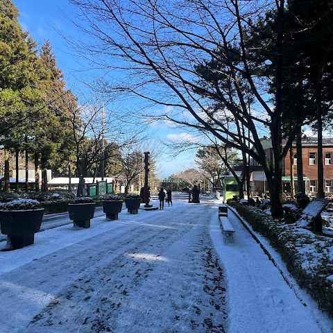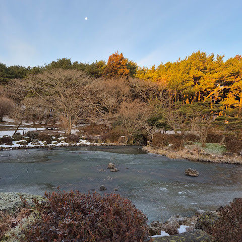 저희 가족은 한라산 절물 자연휴양림에서 4박 5일간 무겁습니다 겨울에 오면 항상 느끼는 거지만 이 지역은 다른 제주도 지역보다 기대가 높은 편이라서 눈이 쌓여 있고 자동차에 체인은 하지 않고 다니면 위험하기도 합니다. 휴양림이라 새벽에 일어나서 산책하면 분위기가 아주 고즈넉하고 좋은 편이고 휴양림 뒤쪽에는 오름이 있어서 정상까지 오르는 것도 좋습니다.