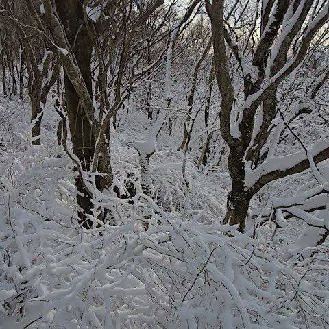정말 아름다운 숲이었습니다. 전날 아침에 도착했는데 가장 아름다운 시간이었습니다. 길이 얼어붙어 미끄러지기 쉬웠기 때문에 멀리 가지 못했지만, 눈앞의 풍경은 떠나는 것을 잊게 만들기 충분했습니다.