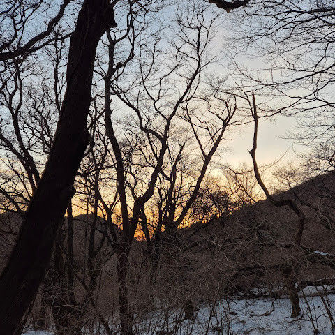 성인인 아들과 이런저런 얘기하면서 뽀드득거리는 눈을 밟으며 걸음. 경사가 완만함