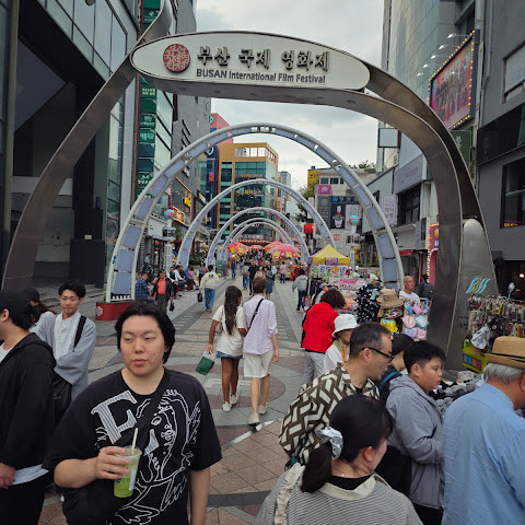 부산국제영화제가 열리는 활기 넘치는 야시장이라 유명 연예인들의 흔적이 곳곳에 남아 있습니다. 현지 음식과 🍛활기찬 상점들 🏬, 그리고 레스토랑들이 즐비합니다.