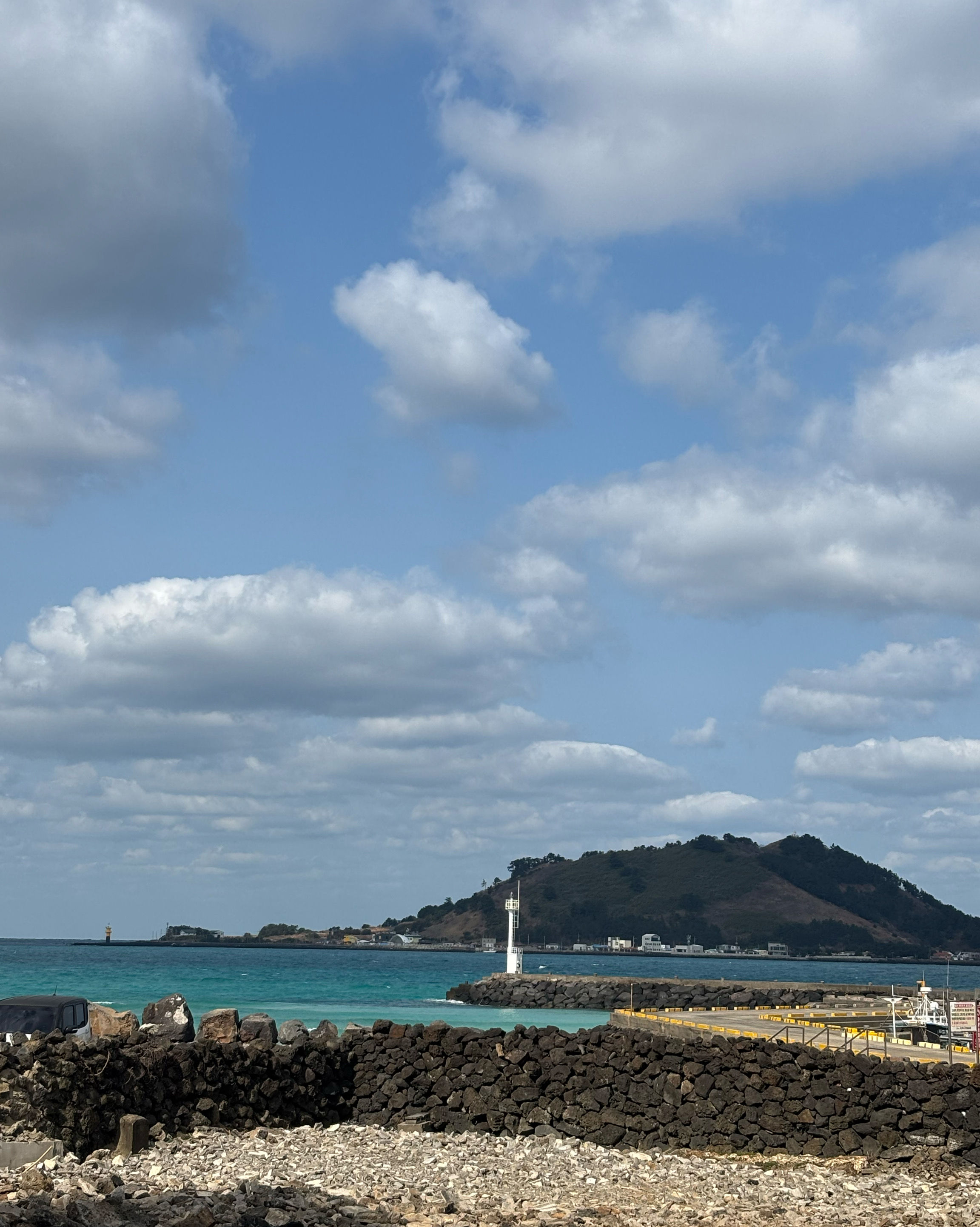 화창한 날씨 배타고 들어감 비양도 정말 아름다워요 제주여행에서 꼭 추천합니다👍 자전거 타고 한바퀴 돌면 성인기준 15분 가능해요 걸어서도 경관이 참 좋아요