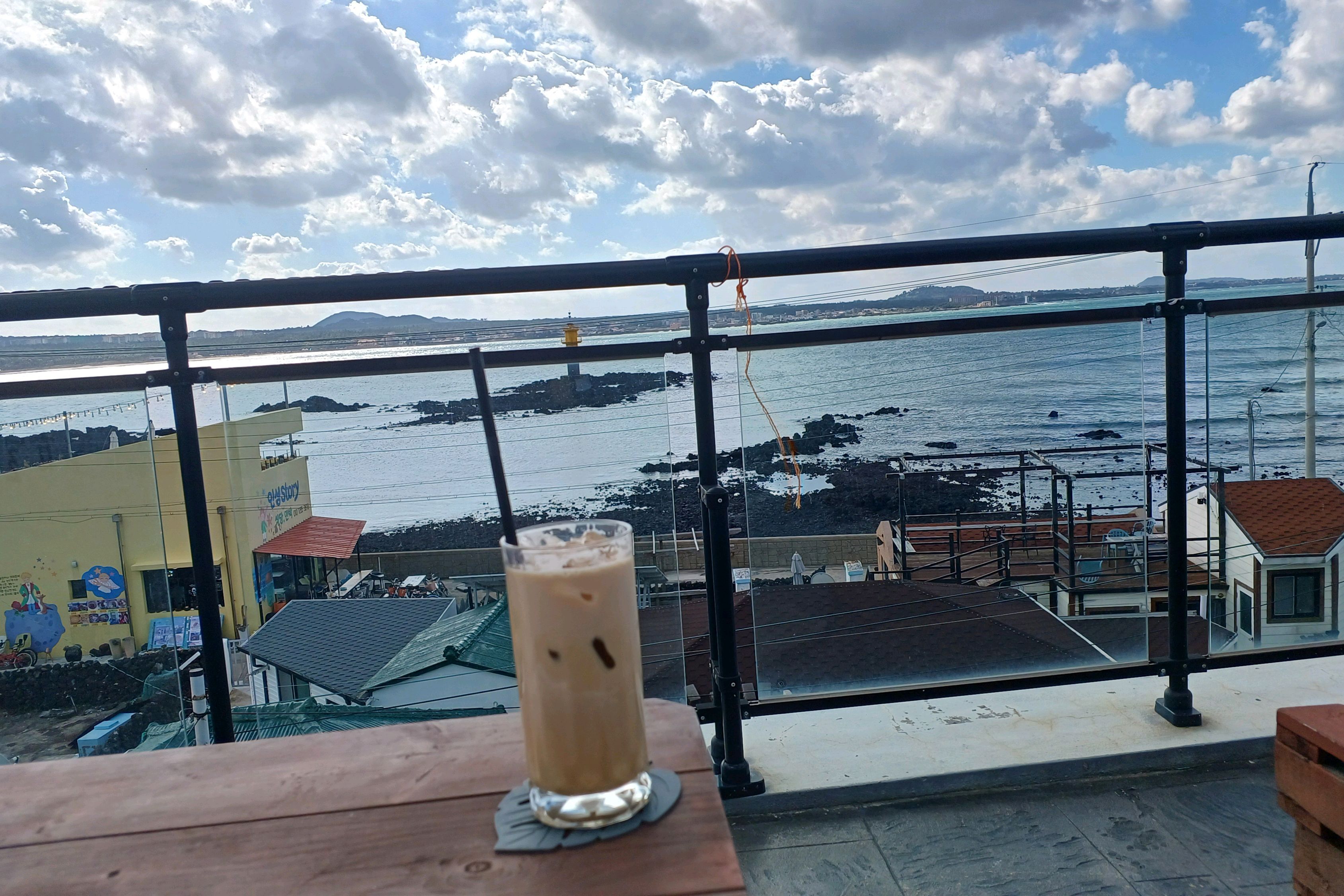 비양도 안에 카페를 가면 자전거를 빌려주는데 자전거 타고 두 바퀴 정도 돌기 좋은 것 같아요.