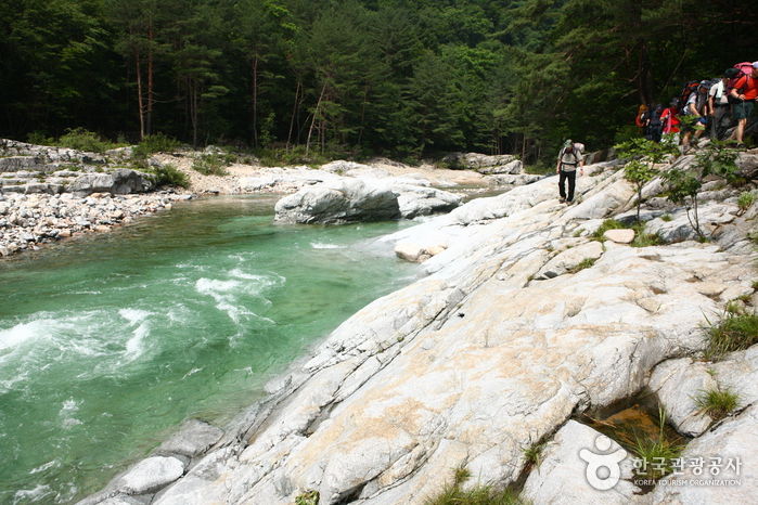 깨끗한 암반과 조약돌, 맑은 물, 주위의 울창한 숲과 부드러운 산세가 어우러져 시원스러운 백담(百潭)계곡은 100개의 담(물이 고인 깊은 곳)이 있다고 해서 붙여진 이름으로 백담계곡 중심부에 자리한 백담사는 만해 한용운의 자취가 서려 있는 고찰로서 유명하다. 백담 계곡 상류로 이어지는 수렴동 계곡도 내설악을 대표하는 또 하나의 아름다운 골짜기로 크고 작은 폭포와 소(沼)가 기암괴석과 조화를 이루며 절경을 보여준다. 백담계곡~수렴동~마등령을 넘어 외설악으로 이어지는 등산로는 새벽에 출발하면 저녁에 설악동에 도착하는데 마등령에서의 칼날 같은 공룡능선 조망이 압권이다.