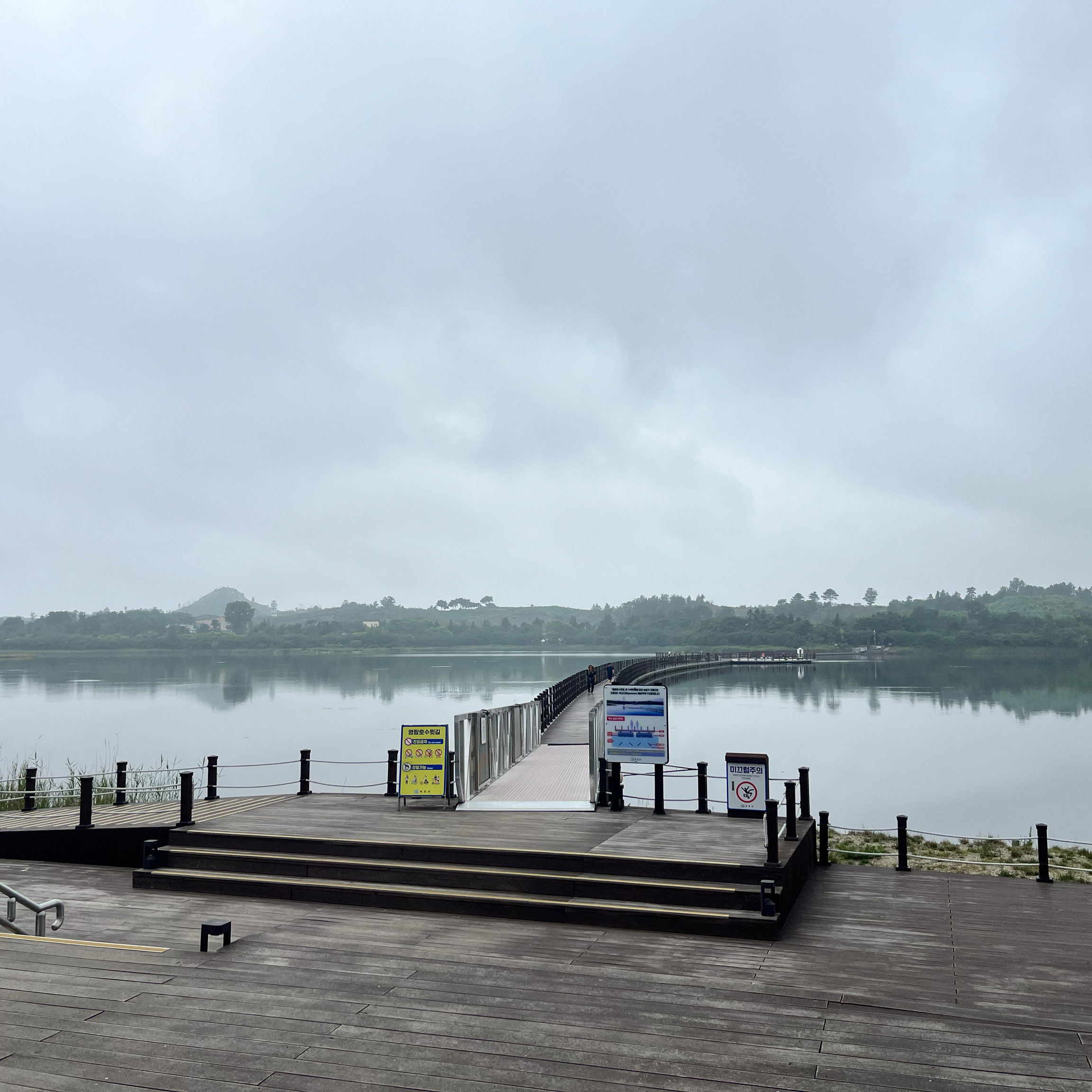 호수 중간에 나무데크 산책로도