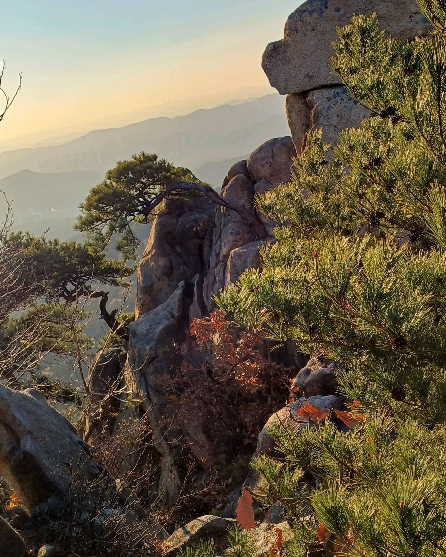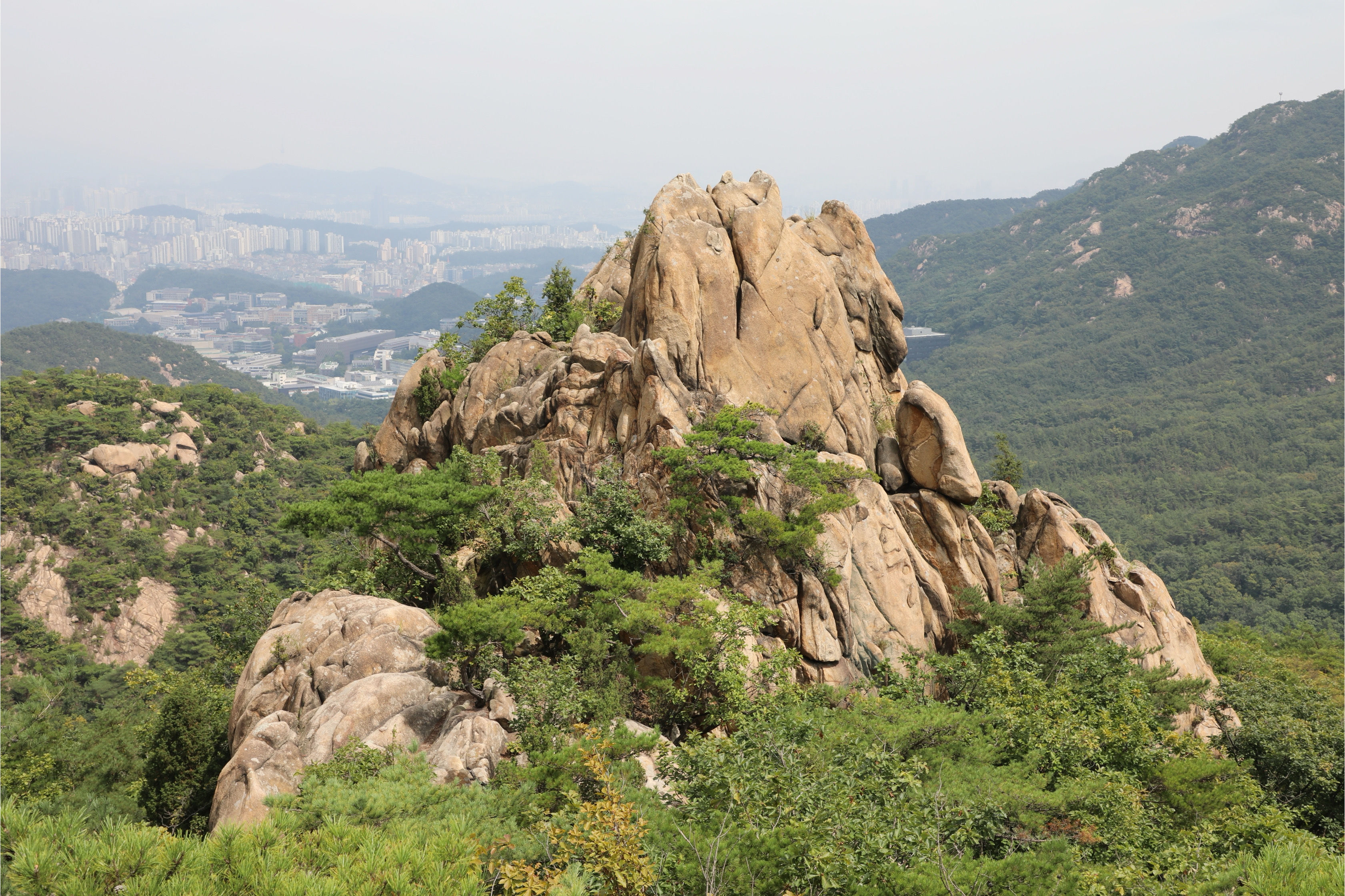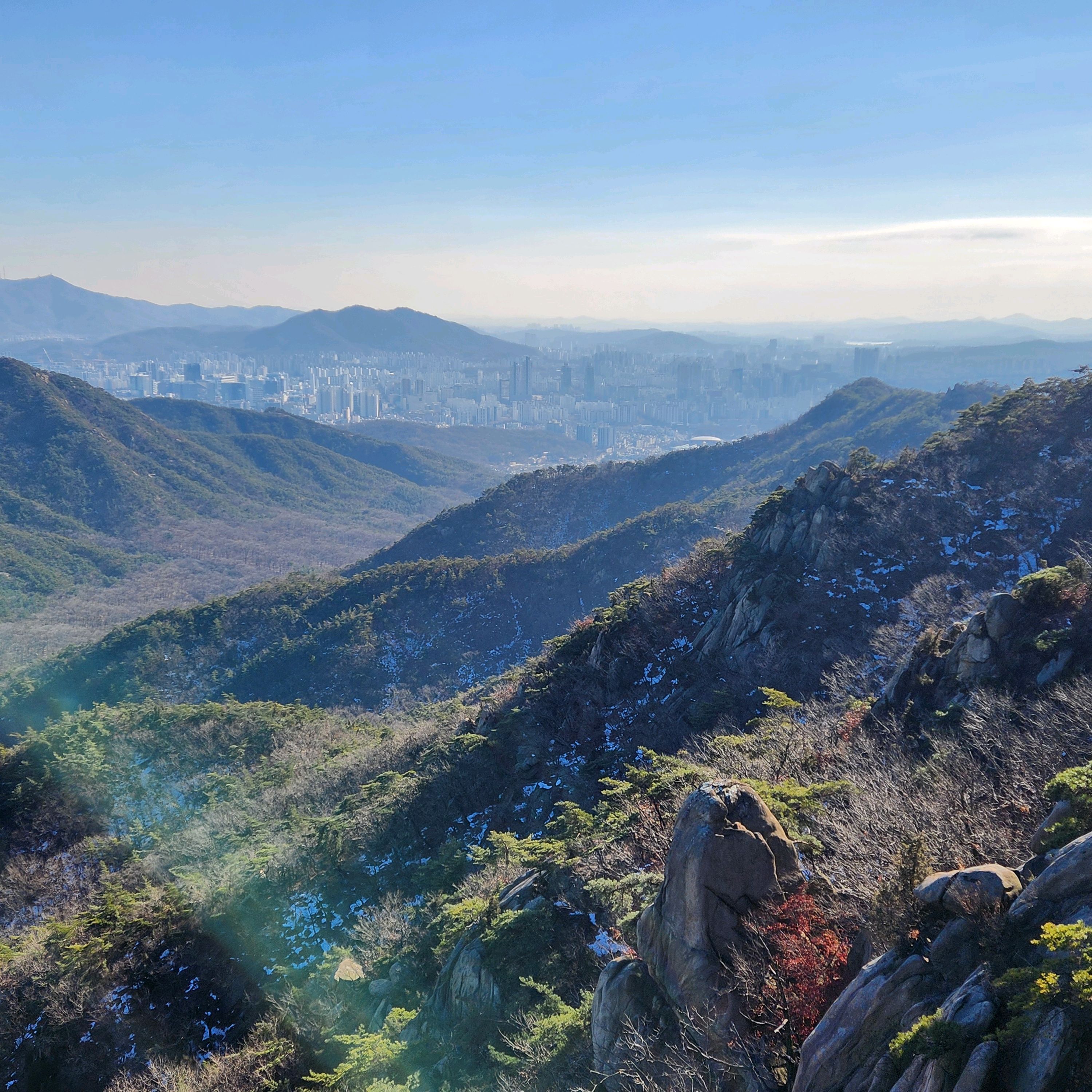 암릉 구간을 지나 민주동산에 서자 관악산 능선과 서울 시내가 파노라마처럼 펼쳐졌다.