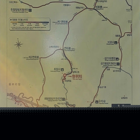 천동어의곡코스 (4시간 40분 / 11.6km) 천동탐방지원센터-천동쉼터-천동갈림길-비로봉-어의곡갈림길-어의곡탐방지원센터 *