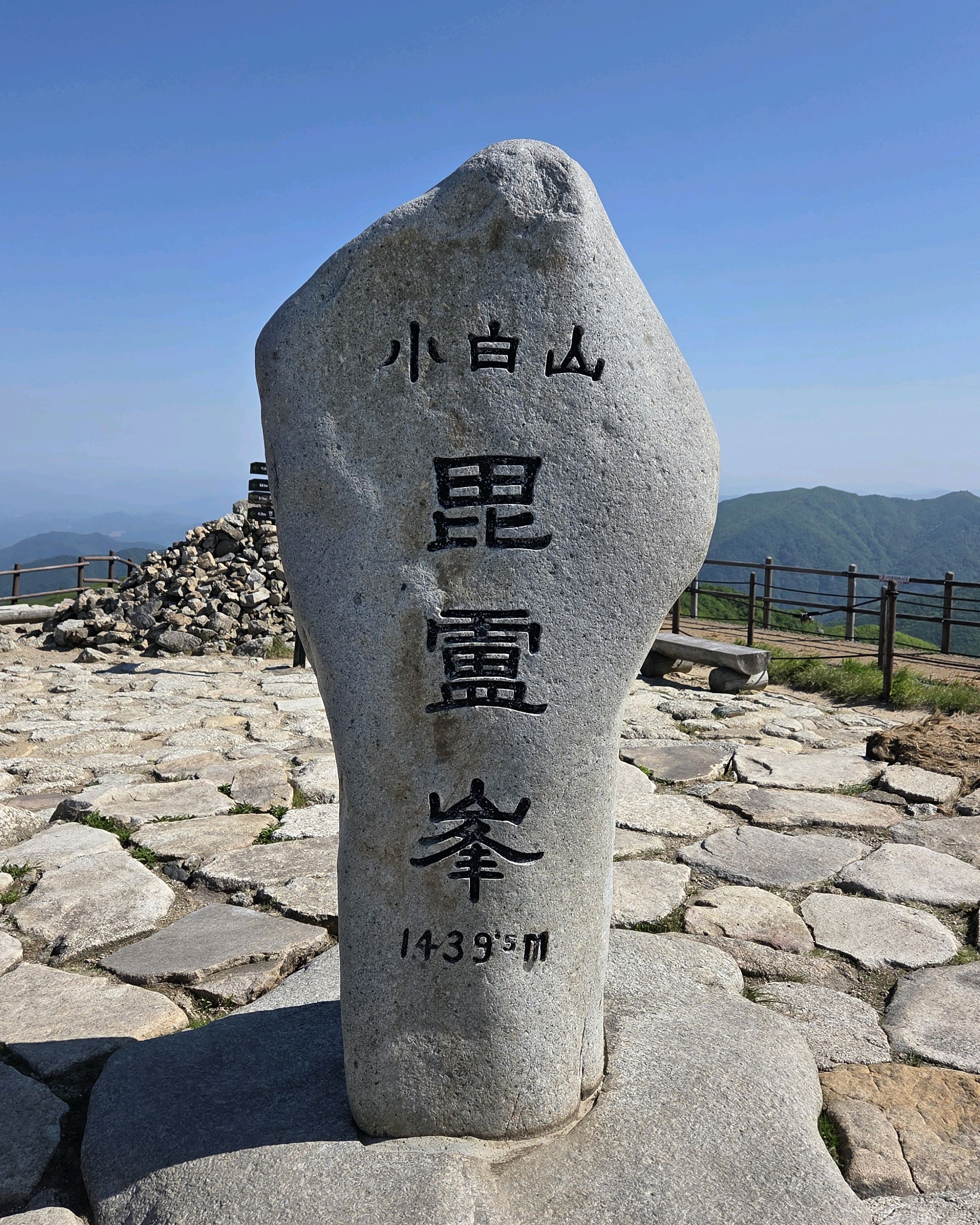소백산국립공원 삼가주차장에서 달밭골을 거쳐서 비로봉 으로 오르는 코스는 5.5km로 편도 약 2시간30분 걸립니다. 비로봉까지 중급정도코스로 비로봉에서 국망봉 연화봉 등으로 갈수 있습니다. 6월 초순까지는 철쭉시즌이라 휴일에는 등산객이 많아요. 비로봉 정상의 바람은 여름에도 추우니 바람막이 꼭 준비하세요.