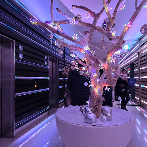 공사 중인 것 같습니다. 1층의 웅장한 로비에는 커다란 크리스마스 트리와 화려한 조명 장식이 있습니다. 엘리베이터는 고급 레스토랑까지만 운행합니다. 다른 시설은 찾을 수 없어서 더 자세한 정보를 드릴 수 없습니다. 방문하실 때 참고하실 만한 랜드마크라고 생각하시면 될 것 같습니다.
