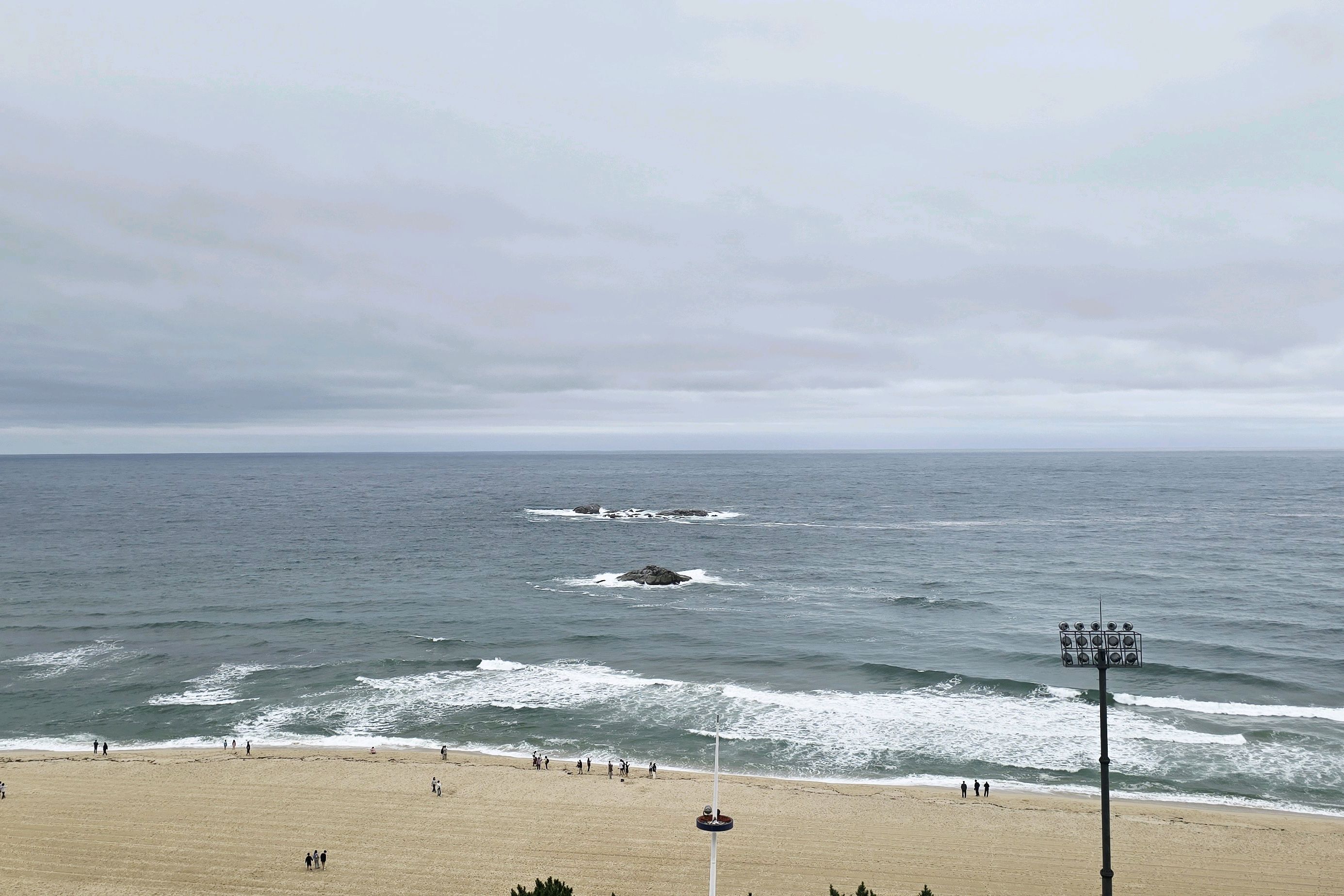 강릉을 대표하는 커피거리가 있는 멋진 해변이죠. 해수욕장 폐장 후에도 간간히 물놀이를 하는 사람들이 보이네요. 따뜻한 커피 한 잔 들고 파도 앞에 서 있으면 개운해지는 느낌이에요.