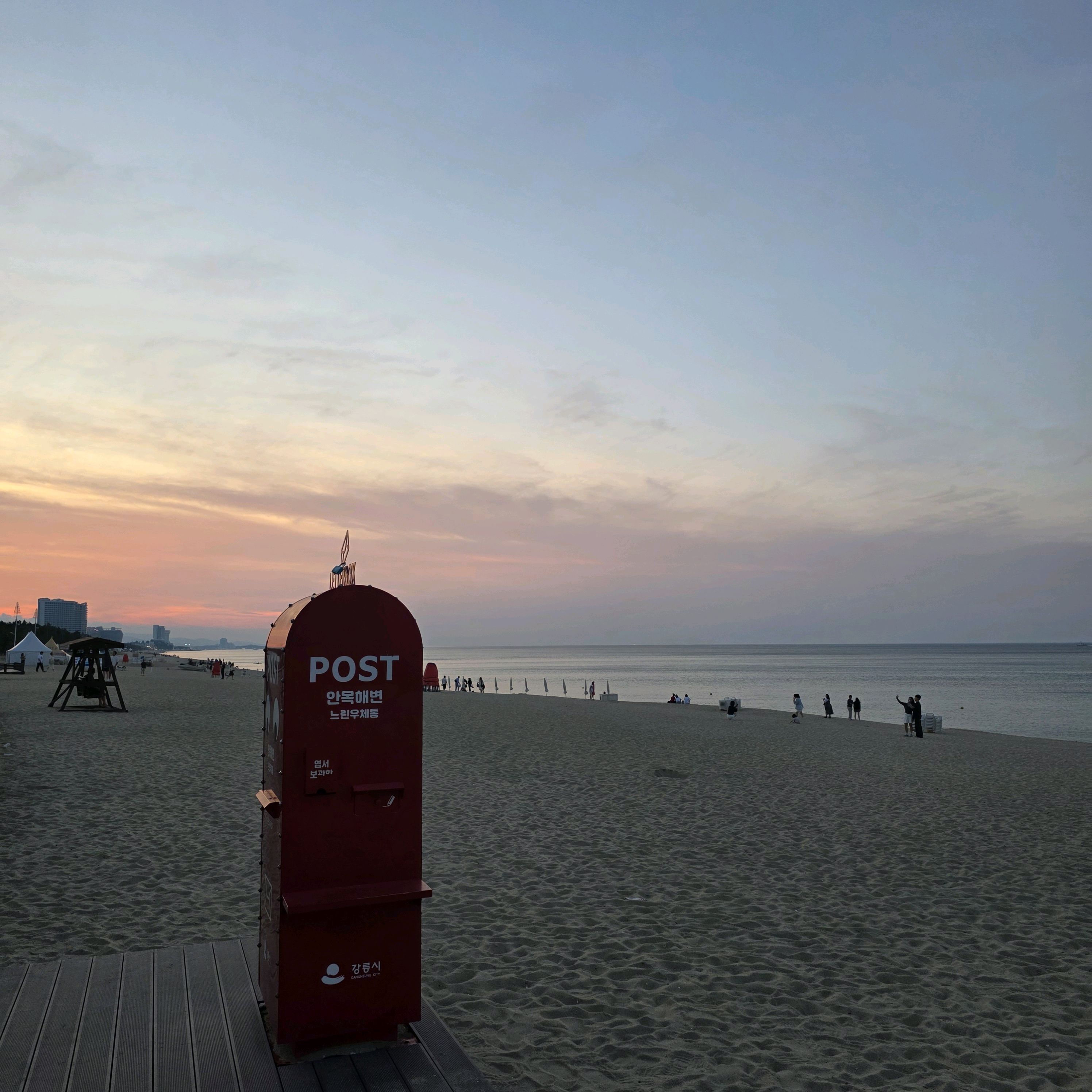 안목해변을 목적지로 정하고 해안 도로를 달려 마주한 안목해변의 노을 지는 모습이 계속 보던 SNS를 제치고