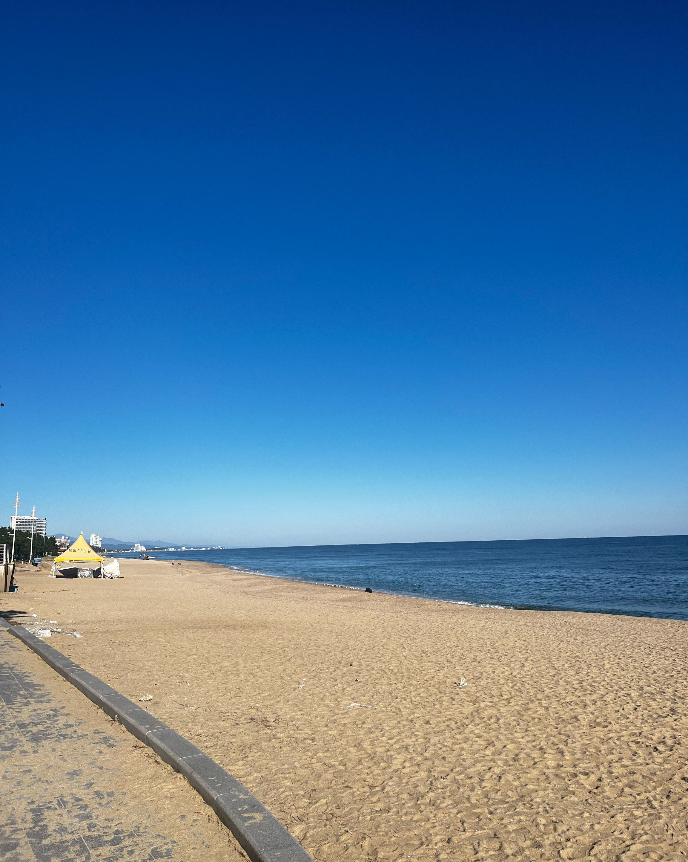 드디어 여름 휴가! 💙 푸른 하늘과 맑은 바다가 함께하는 안목해변이다. 강렬한 햇살 아래, 부드러운 모래를 밟으며 즐기는 여유로운 순간이 너무 행복하다. 자유로운 분위기 속에서 모든 것을 잊고 힐링하는 중! 🌊