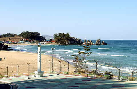 삼척 시내에서 약 4km 떨어진 곳에 위치한 조용하고 아담한 해변이다. 평균수심 1∼2m 정도로 안전하게 물놀이를 즐길 수 있다. 동해시에 위치한 추암해변과 인접하여 추암 촛대바위 일출을 한눈에 감상할 수 있으며 갈매기 떼와 어우러진 겨울 바다가 아름답기로 유명하다. 바로 옆 수로부인공원(해가사의터)에는 삼국유사의 [해가] 설화를 토대로 복원한 드래곤볼이 설치되어 있는데 볼을 돌리며 사랑과 소망을 기원하는 신개념 관광명소로 떠오르고 있다. 해수욕장 끝에 있는 작은 동산은 추암해변으로 이어져 있어 산책하며 걸어올라가면 된다.