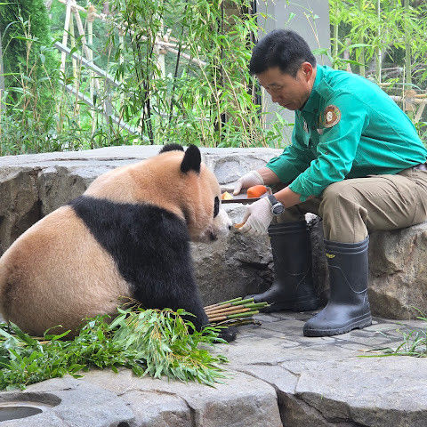 오랜만에 晖宝瑞宝가 벌써 이렇게 컸네요. 새로 지은 장소가 너무 깨끗한데 좀 작아서요!! 그리고 아이바오가 출근하는 곳은 정말 시끄럽어요. 할아버지께서 주의해 주셨으면 좋겠습니다. 할아버지들이 바오family 에게 잘해 주셔서 정말 감사합니다!!ㅠㅠ