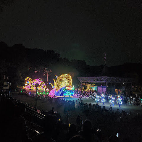 오후 2시에 테마파크, 동물원, 그리고 많은 케이블카가 포함된 플로트 퍼레이드가 있었습니다. 다리가 약한 사람들에게는 오르내리는 것이 약간 힘들었습니다. 기차 퍼레이드는 훌륭했고 약 30분 동안 지속되었습니다. 매우 혼잡한 느낌이었고 팬더도 있었습니다. 동물들을 보려고 1시간 30분 동안 줄을 서서 낭비한 것이 아쉬웠고, 그들을 볼 시간이 없었습니다. 아쉬웠습니다. 내부의 음식과 음료는 매우 편리했고 가격도 괜찮았습니다. 매우 실망스러웠던 것은 화장실이 그다지 인기가 없었고 표지판도 없이 매우 외딴 곳에 숨겨져 있었다는 것입니다. 그들은 영어를 하지 않았고 상인들은 간단한 영어만 말했습니다. 무언가를 찾을 수 없다면 영어로 질문할 수 있습니다. 그들의 답변은 영어 듣기와 말하기 능력에 매우 도전적입니다. 다른 모든 것은 좋았습니다. 부모님이 여기에 가고 싶어한다면 접이식 의자를 준비하는 것이 가장 좋습니다. 많은 인기 있는 놀이기구는 줄이 길다. 우리가 방문한 4D 영화관은 개선의 여지가 있다고 느꼈지만, 베트남 바나힐의 같은 놀이기구만큼 좋지는 않았습니다.