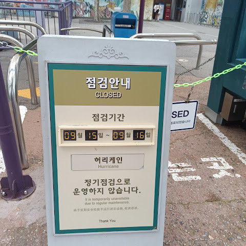 슬프네요. 제가 할 수 있는 말은 그게 다예요. 날씨 때문에 T-익스프레스가 무기한 대기 상태였어요. 안타깝게도 하루 종일 운영하지 않아서 정말 아쉬웠어요. 에버랜드에 온 목적이 완전히 망가졌네요.