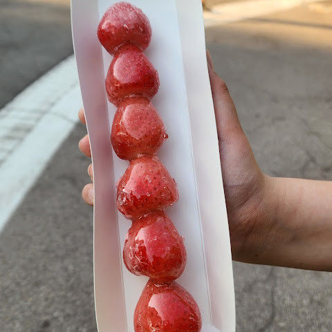 떠나는 길에 돼지꼬치를 파는 가판대를 지나쳤습니다. 냄새가 너무 좋아서 몇 개 사야 했습니다! 에버랜드 직원들은 대부분 친절하고 훌륭했습니다. 그런데 꼬치 가게 계산원이 그냥 있고 싶어 하지 않았어요. 한국어를 못 해서 제가 원하는 걸 가리켰는데, 계산원이 눈을 굴렸어요. 신용카드로 계산했는데 영수증을 건네주면서 꼬치를 사러 가는 곳을 가리켰어요.