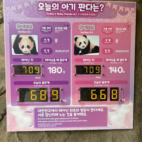 드디어 1월 서울 여행 후기를 쓸 시간이 생겼어요! 제가 가장 좋아하는 팬더 가족, 아이바오, 러바오, 푸바오, 루이바오, 후이바오 때문에 에버랜드 방문은 항상 제 위시리스트에 있었어요. 🐼 유튜브에서 팬더 가족 영상을 오랫동안 봐왔는데, 드디어 직접 볼 수 있게 되어 정말 꿈만 같았어요.