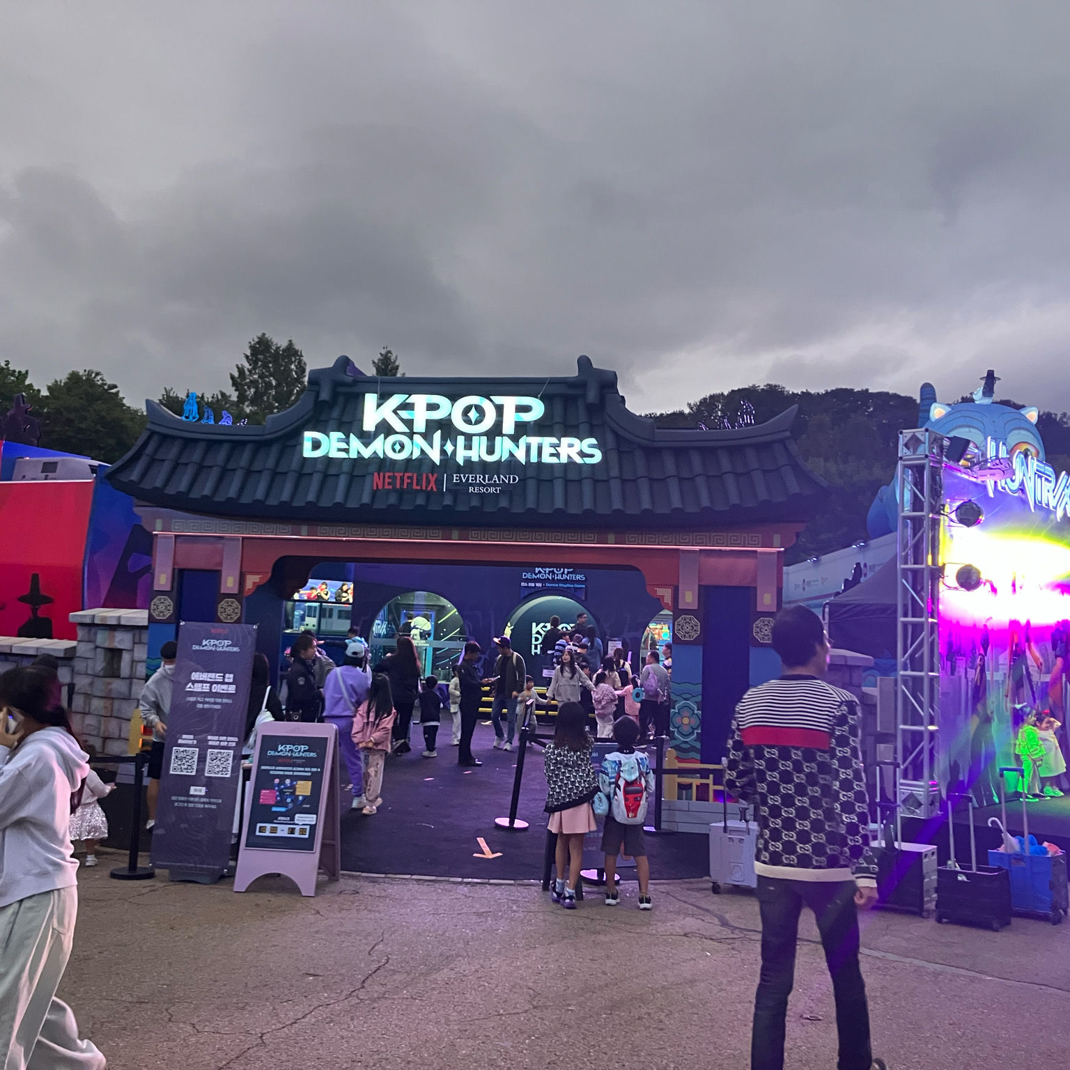 에버랜드에 가서 K-Pop 데몬헌터 팝업 체험에 들렀는데, 그날의 하이라이트였습니다! 정말 몰입도 높은 시설이었고, 다양한 테마 활동과 사진 촬영 스테이션이 있어 아이와 어른 모두 푹 빠져들었어요.